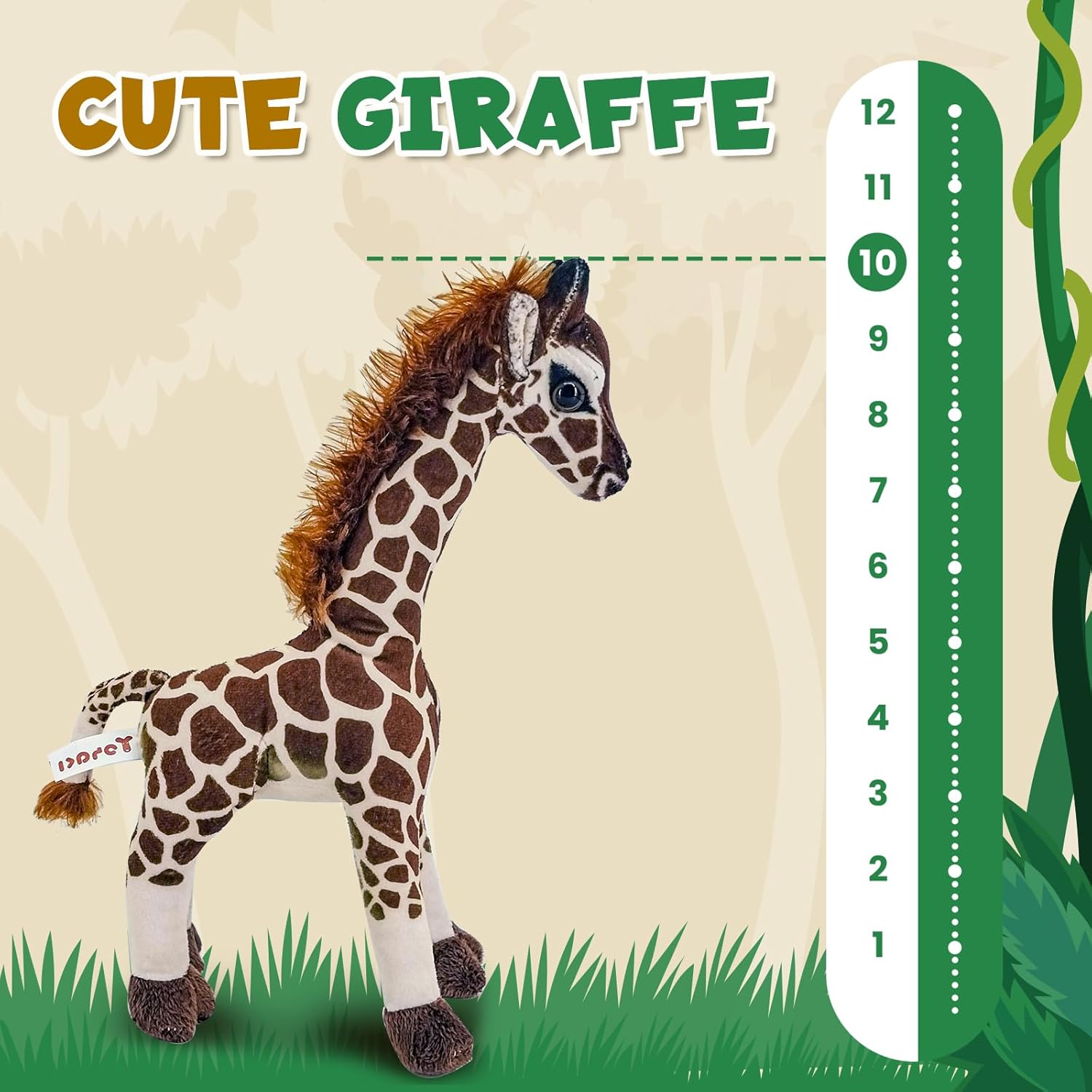 - Appearance & Size: 10 and 12 inches are available. Realistic giraffe plush toy, easy to carry, soft and small enough to hug, decorate and play with, fun and cute design enhances the fun of play.