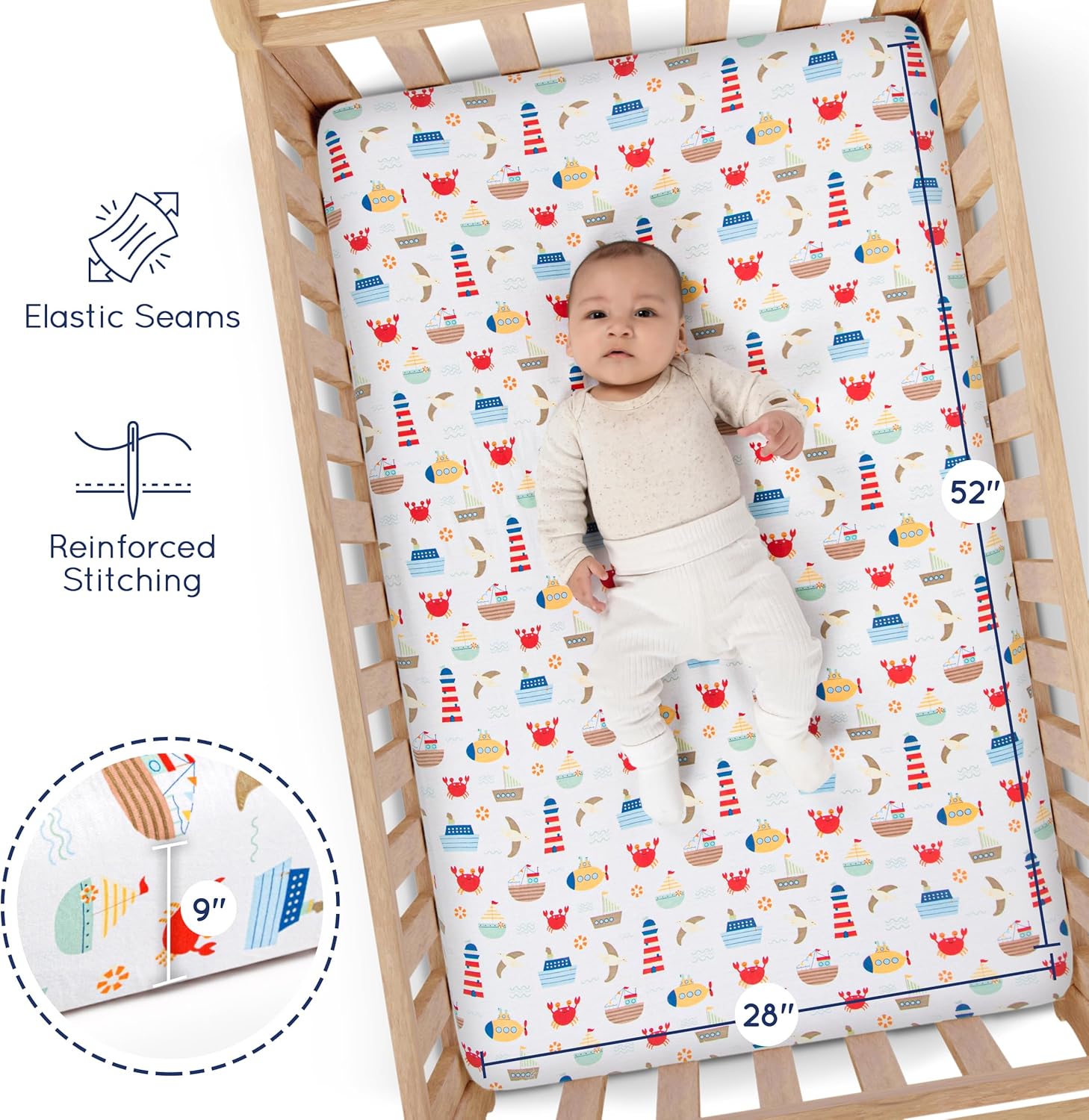 - đź’Ş SOFT & DURABLE - Made from soft jersey fabric with reinforced stitching, these fitted crib sheets are built to last. Soft, breathable and safe baby boy bedding sets for cribs.