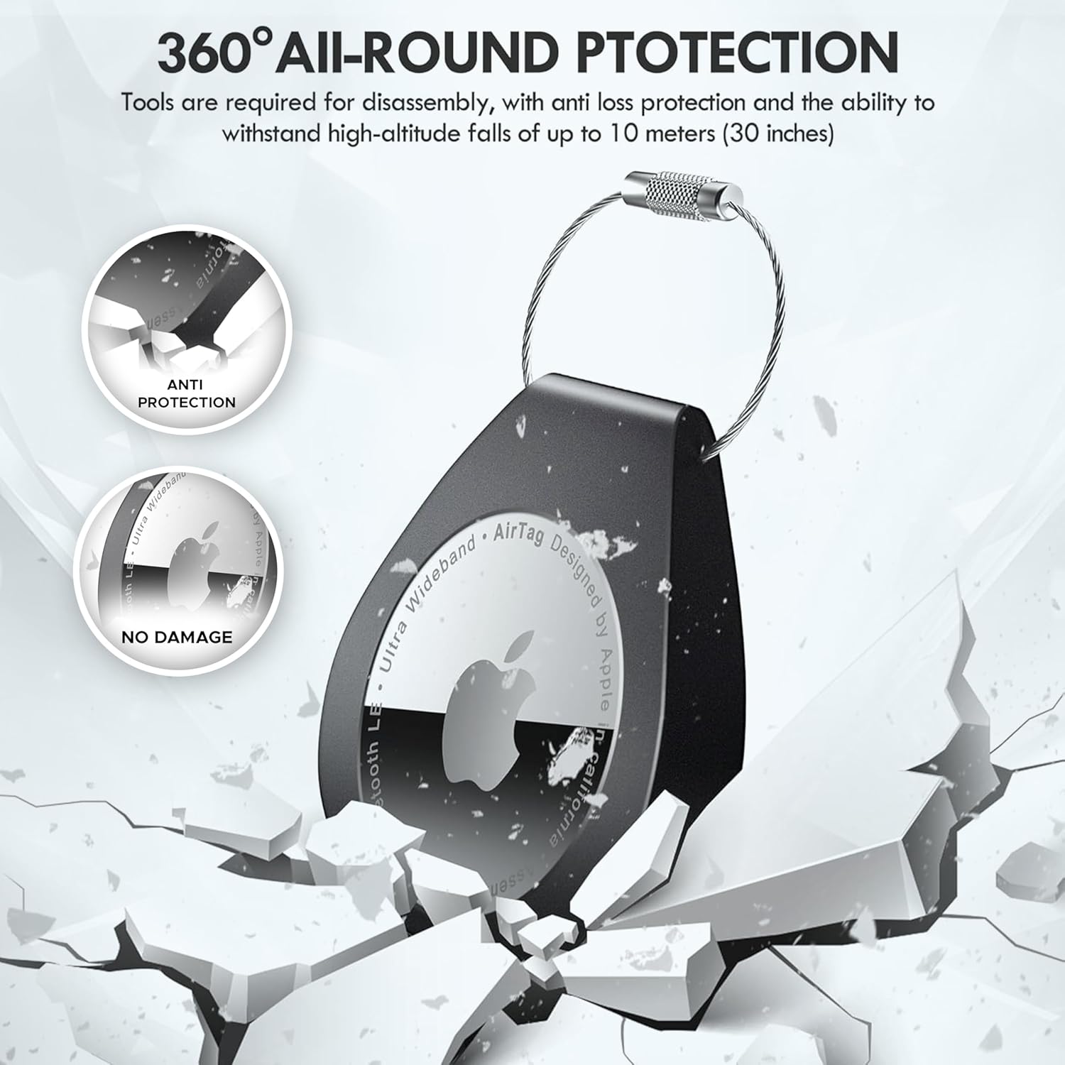 - Design for Airtag: The AirTags case is cut precisely, and perfectly fits Apple AirTag 2021. Utilize the built-in braided wire cable to firmly fasten an AirTag to your key chain, backpacks, pets, or luggage, ensuring a secure attachment. Perfect Lock AirTag keychain.
