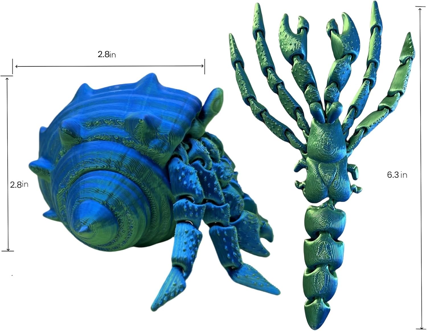 - Gift Idea: The 3D Printed Hermit Crab is a unique and thoughtful gift for friends who love marine life or 3D printed creations. It is a treasure that brings joy and wonder to any collection.