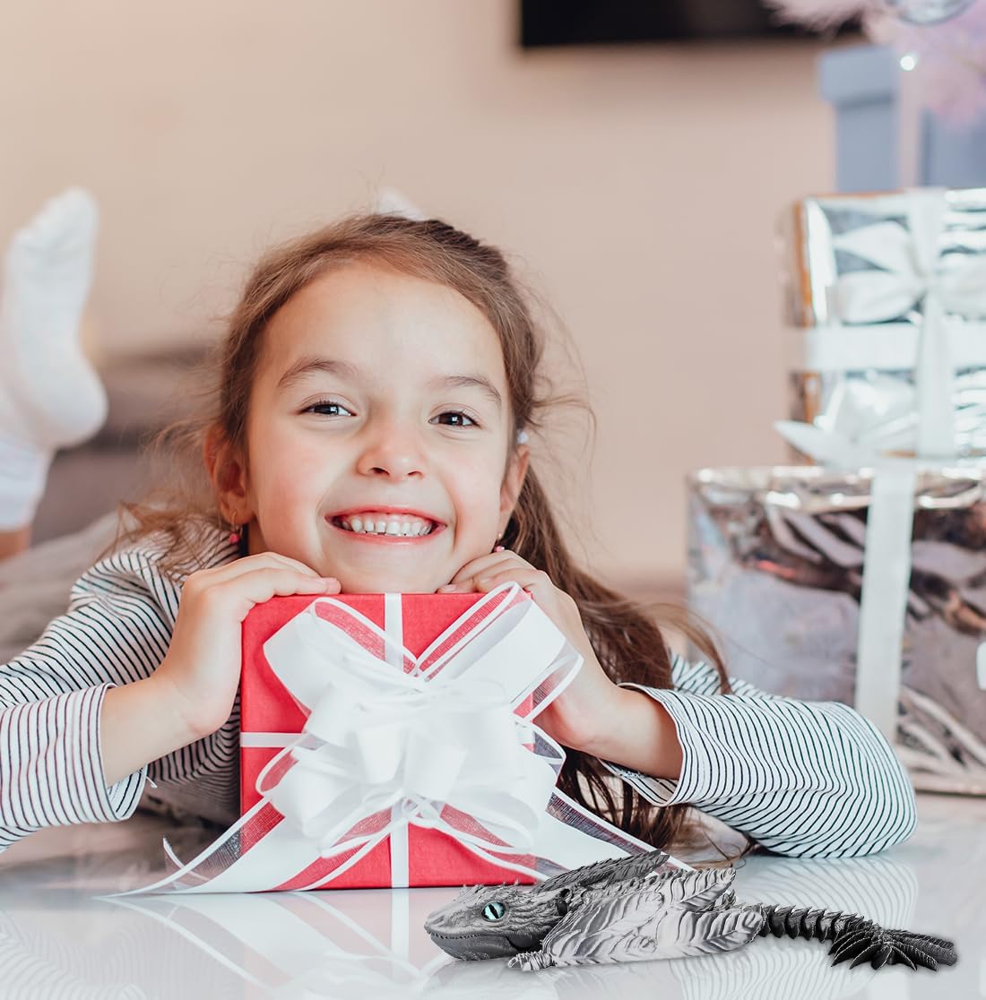 3D Printed Dragon with Wings 3D Printed Animals Articulated Dragon Fidget Dragon 3D Printed Toys Dragon Toy Desk Pets Home Office Decor (Sliver)