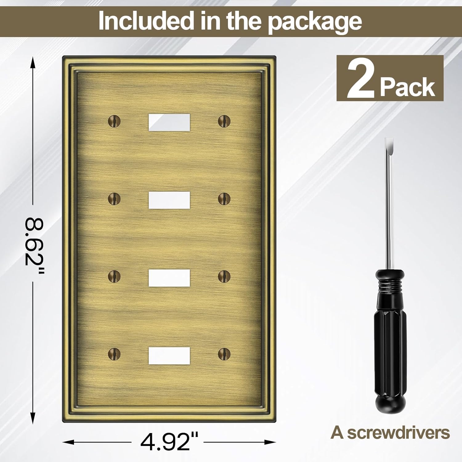 2 Pack Quad Toggle Light Switch Covers Plate, Antique Brass Metal Material Switch Plate Covers, 4 Gang Wall Plate for Light Switch - Classic Style