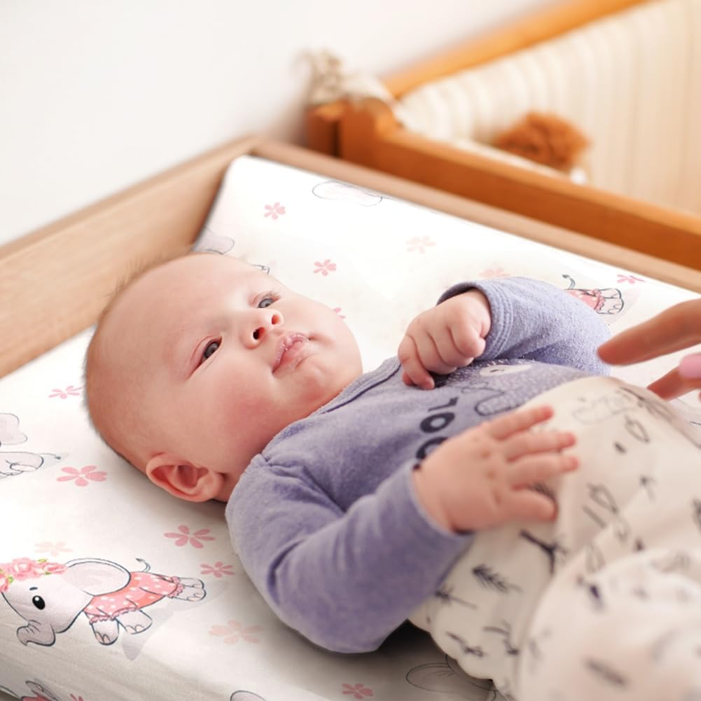 4 Pack Baby Girl Changing Pad Covers Sheets Set Soft Fitted Floral or Elephant Theme Baby Girl Mattress Covers Breathable Toddler Bed Sheets for Infant or Newborn Girls (Elephant, Changing Pad Covers)