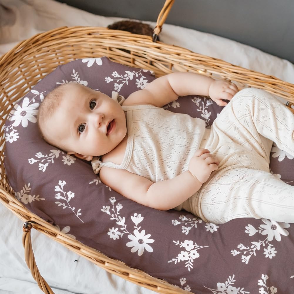 4 Pack Baby Girl Bassinet Sheets Set Soft Fitted Floral or Elephant Theme Baby Girl Mattress Covers Breathable Toddler Bed Sheets for Infant or Newborn Girls (Flower, Bassinet Sheets)