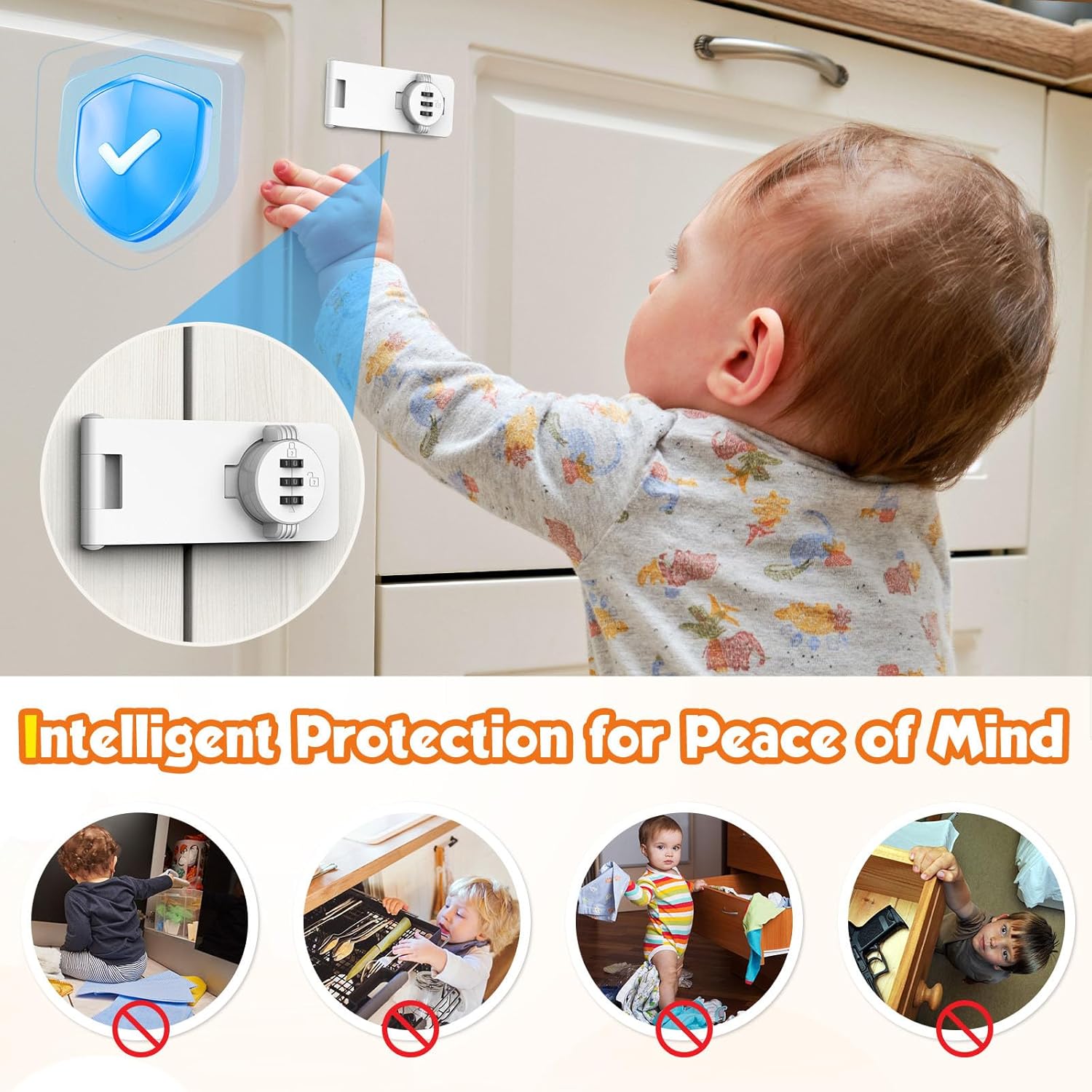3-Digit Combination Cabinet Lock, 4.5" Keyless Safety Drawer Lock for Lockers, Small Doors, Closets, Storage, Office (1, White)
