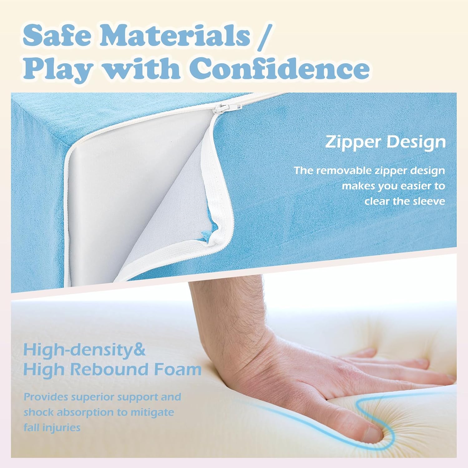 - 【Safe&Fun to Play】: Our climbing blocks for toddlers are made from non-toxic and odorless fabric. Designed with hidden zippers to prevent scratching on children's soft skin, our blocks provide a reassuring and safe environment for play. With a focus on safety, our blocks are built without hard structures or sharp edges to protect children from bumps and injuries.Your child can safely play, toddle, and roll on this climbing toy that offers a soft and supportive surface, providing peace of mind for parents.