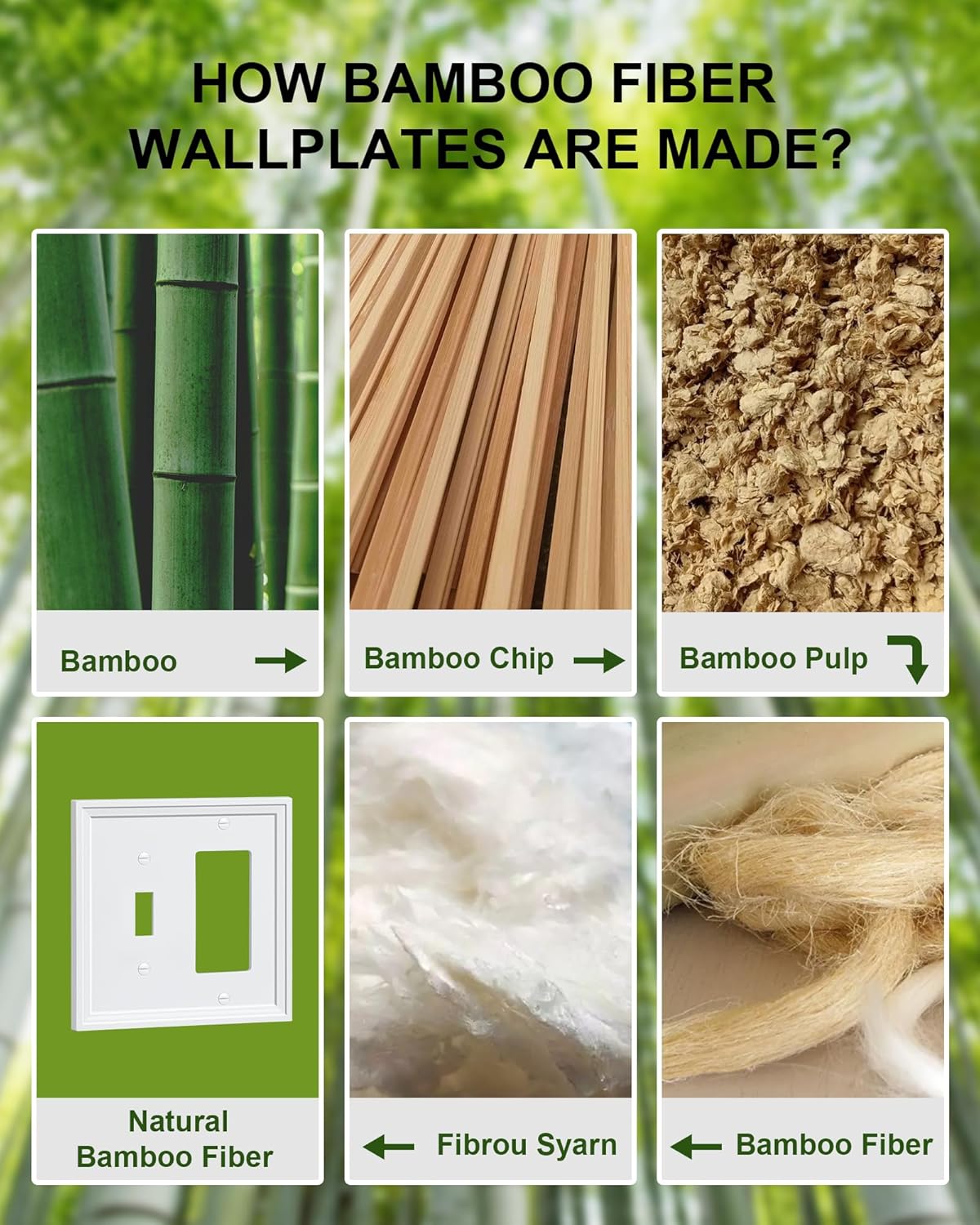 2-Pack Combo Toggle/Decorator Light Switch Cover Plate, White Decorative Electrical Outlet Covers, Bamboo Fiber Wall Switch Plates and Outlet Covers
