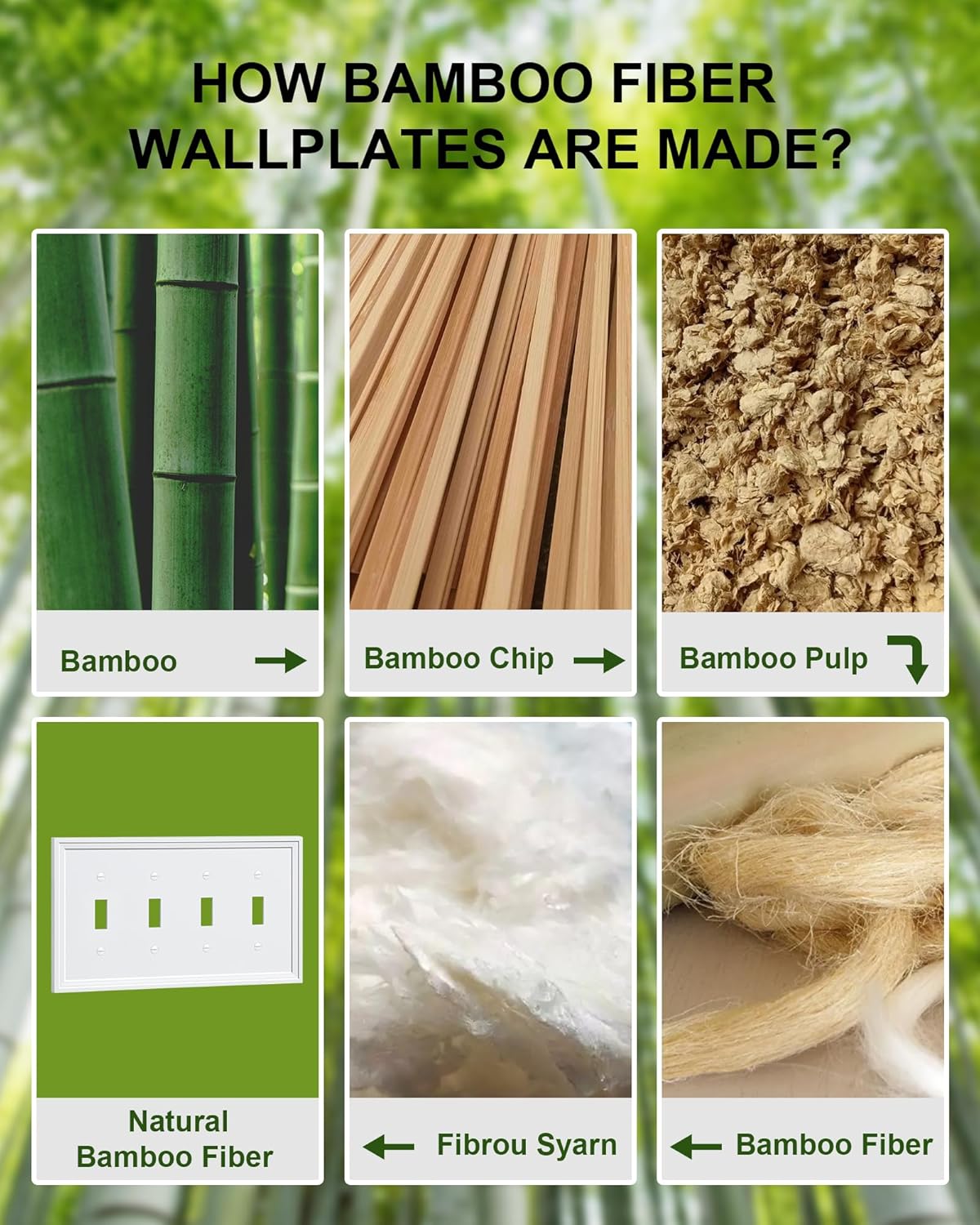2-Pack Quad Toggle Light Switch Cover Plate, White Decorative Switch Plate Covers, Natural Bamboo Fiber 4 Gang Wall Plate, Corrosion Resistant