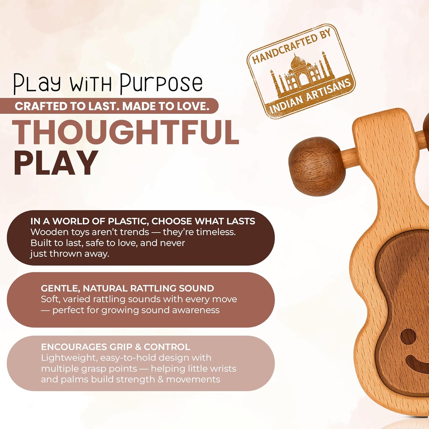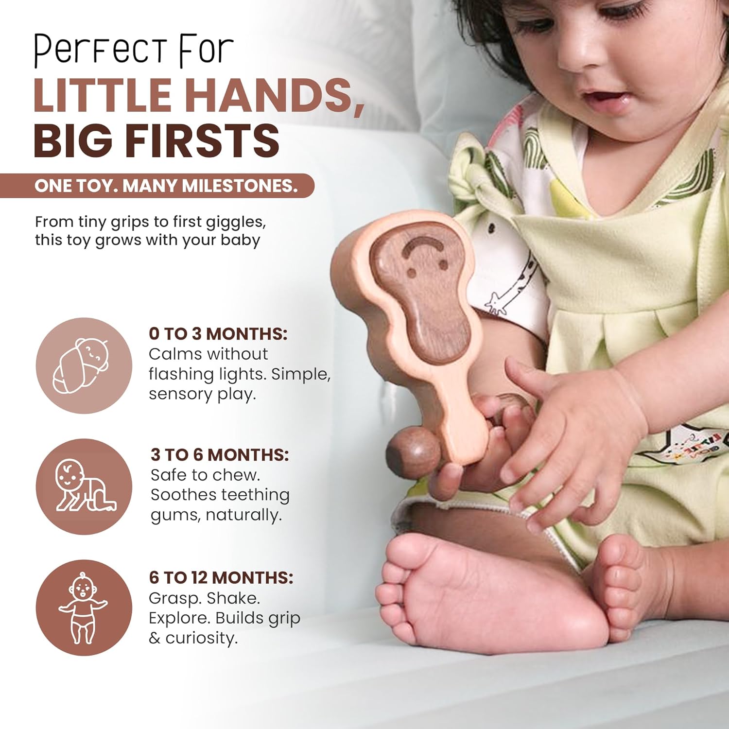- 🎶 SOFT RATTLE FOR SENSORY STIMULATION It’s more than a baby teether — it's also a gentle wooden rattle that engages your baby’s senses with soft sounds. A calming, Montessori-style sensory toy for quiet, mindful play.