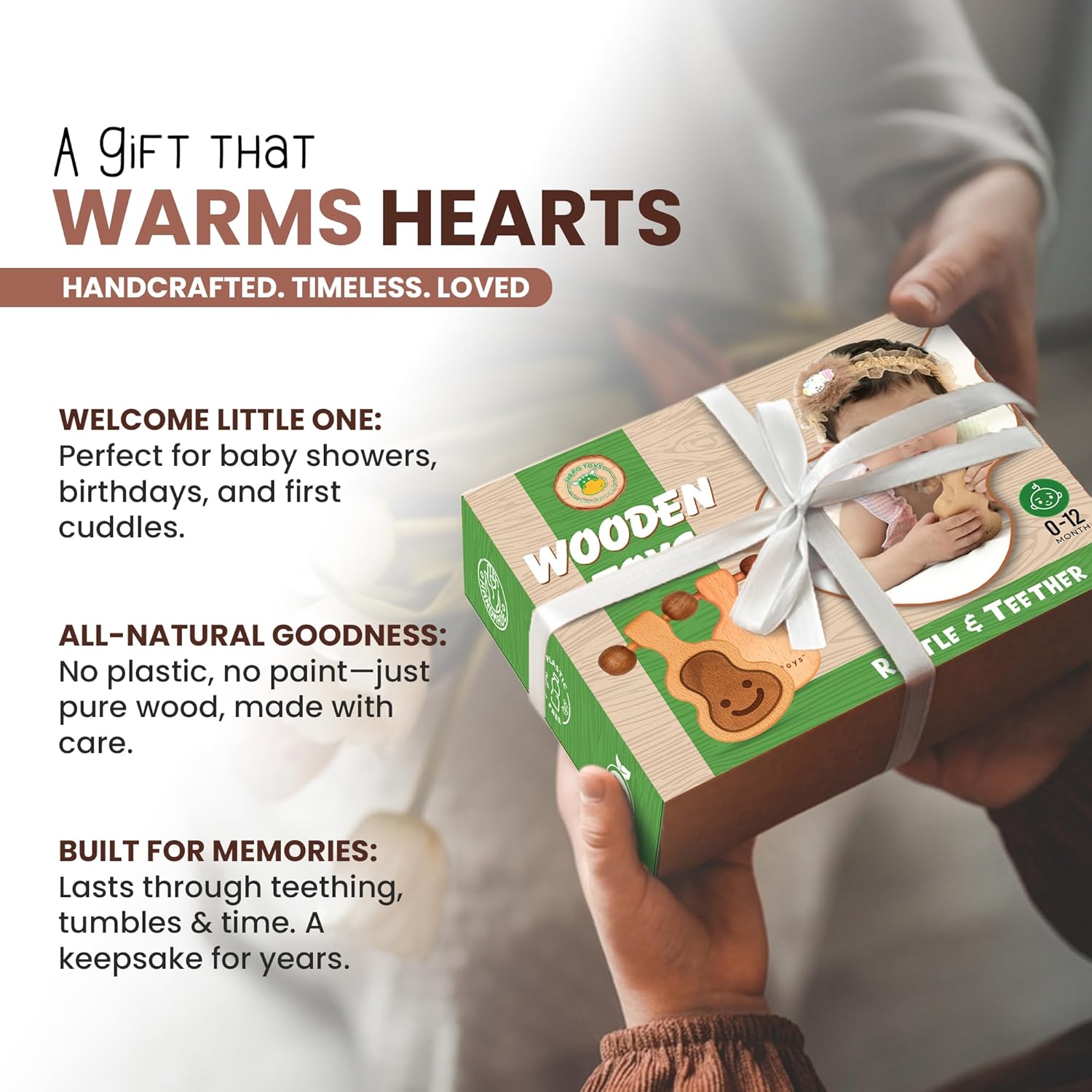 - 🎁 MEANINGFUL GIFT FOR INFANT BOY OR GIRL A beautiful, eco-friendly choice for baby showers, newborns, or new parents. This natural wooden teether is gender-neutral, practical, and sure to be loved. A Montessori baby gift that truly stands out