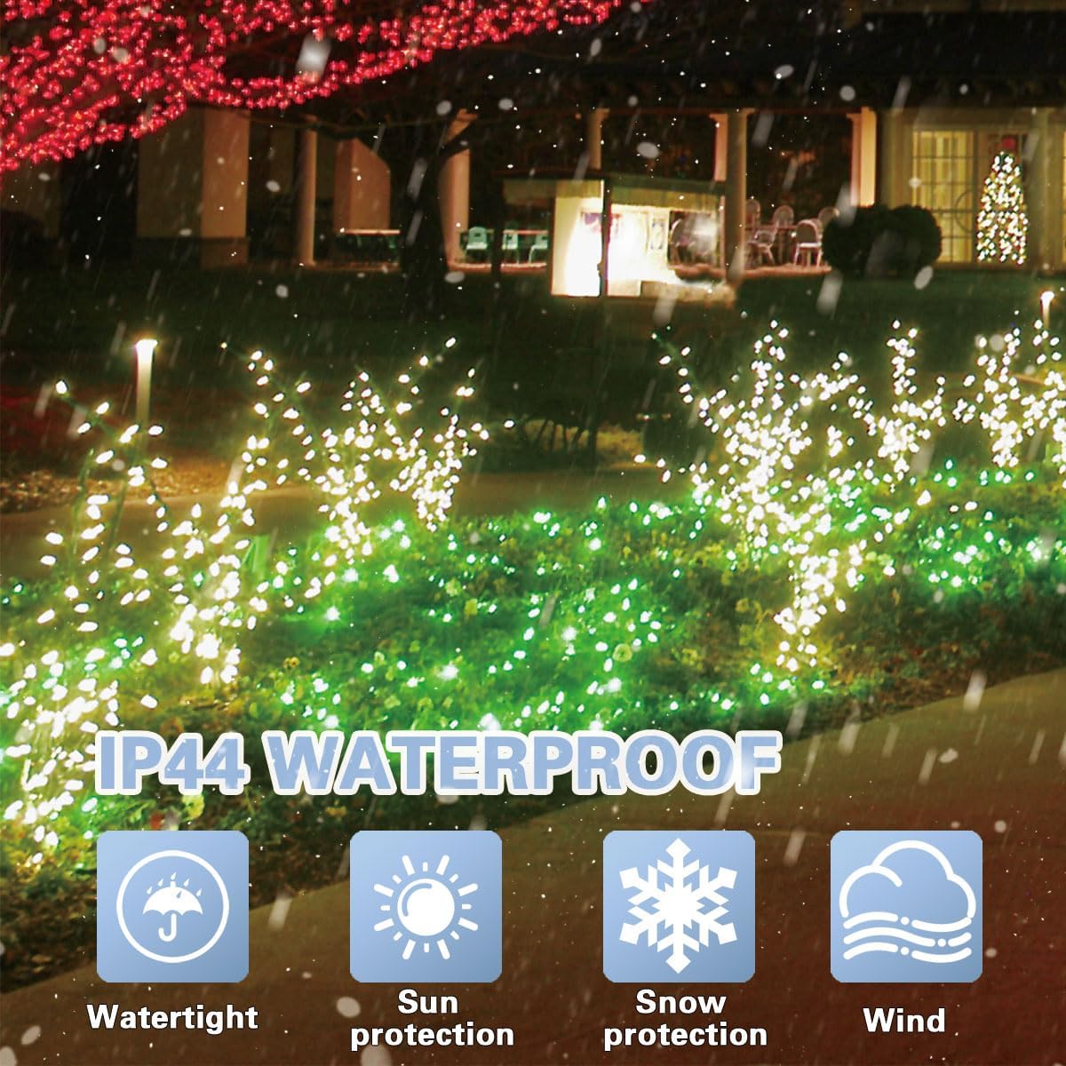 - Waterproof Outdoor String Lights: Our 100 LED waterproof string light has passed IP44 waterproof certification, it can resist water, perfect for indoor outdoor decorations, don't worry about using it in heavy rain and heavy snow, but warm tips please protect the plug.