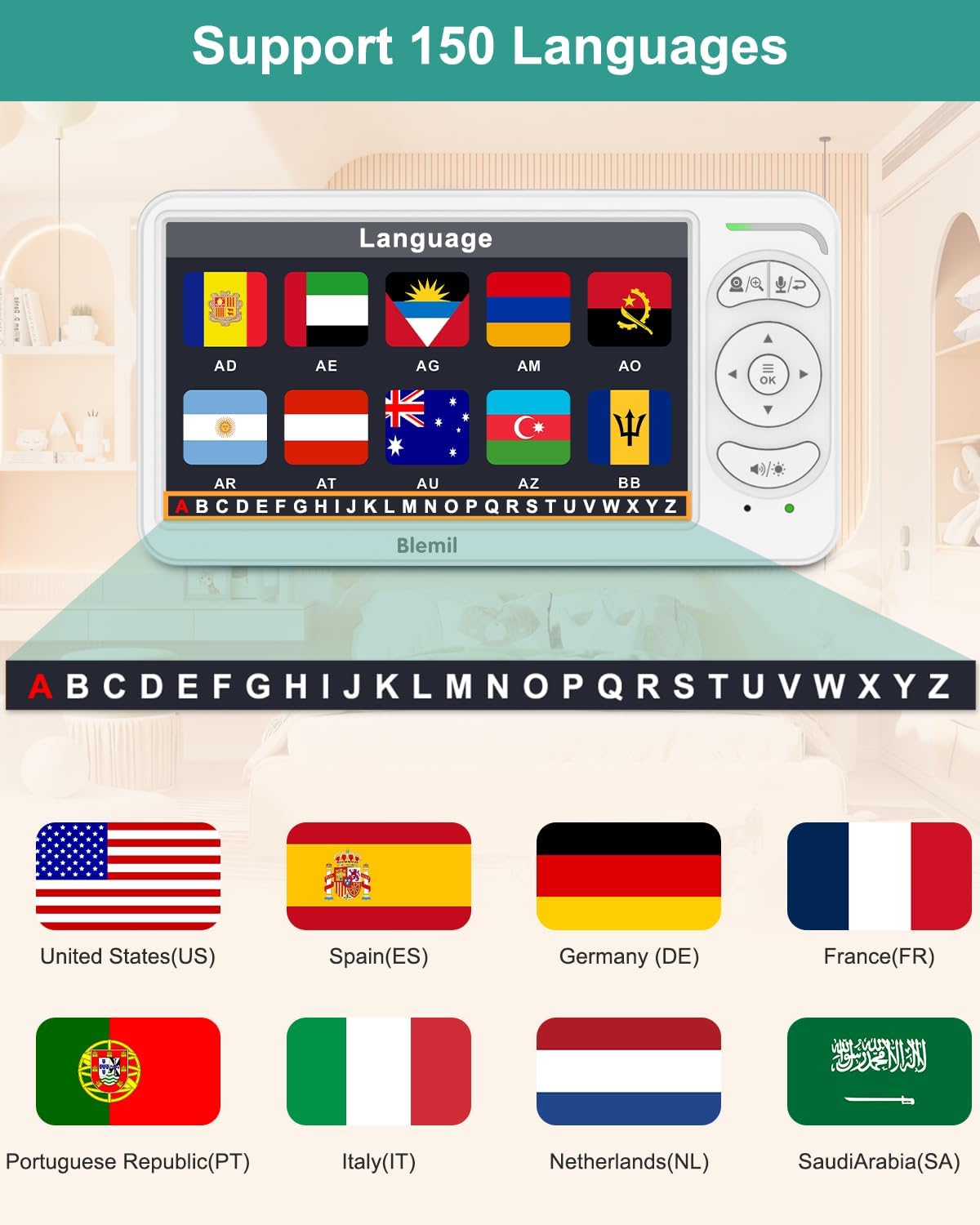 - ă6 Inch IPS Screen & 2 Remote Control CamerasăThe Unique Blemil Baby monitor features a 6-inch IPS display with vivid colors and wide View. At night, it automatically switches to night vision mode (black and white). The camera can be rotated 310° horizontally and 120° vertically Baby can be seen from every angle.