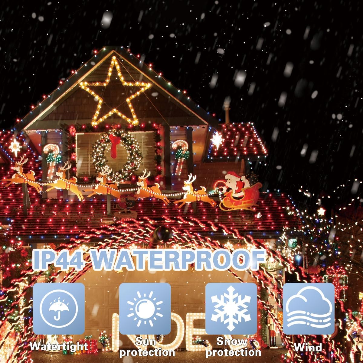 - Waterproof Outdoor String Lights: Our 100 LED waterproof string light has passed IP44 waterproof certification, it can resist water, perfect for indoor outdoor decorations, don't worry about using it in heavy rain and heavy snow, but warm tips please protect the plug.