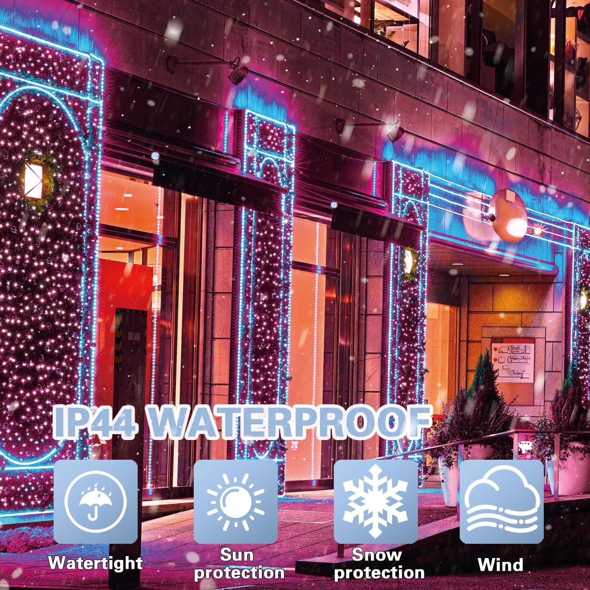 - Waterproof Outdoor String Lights: Our 100 LED waterproof string light has passed IP44 waterproof certification, it can resist water, perfect for indoor outdoor decorations, don't worry about using it in heavy rain and heavy snow, but warm tips please protect the plug.