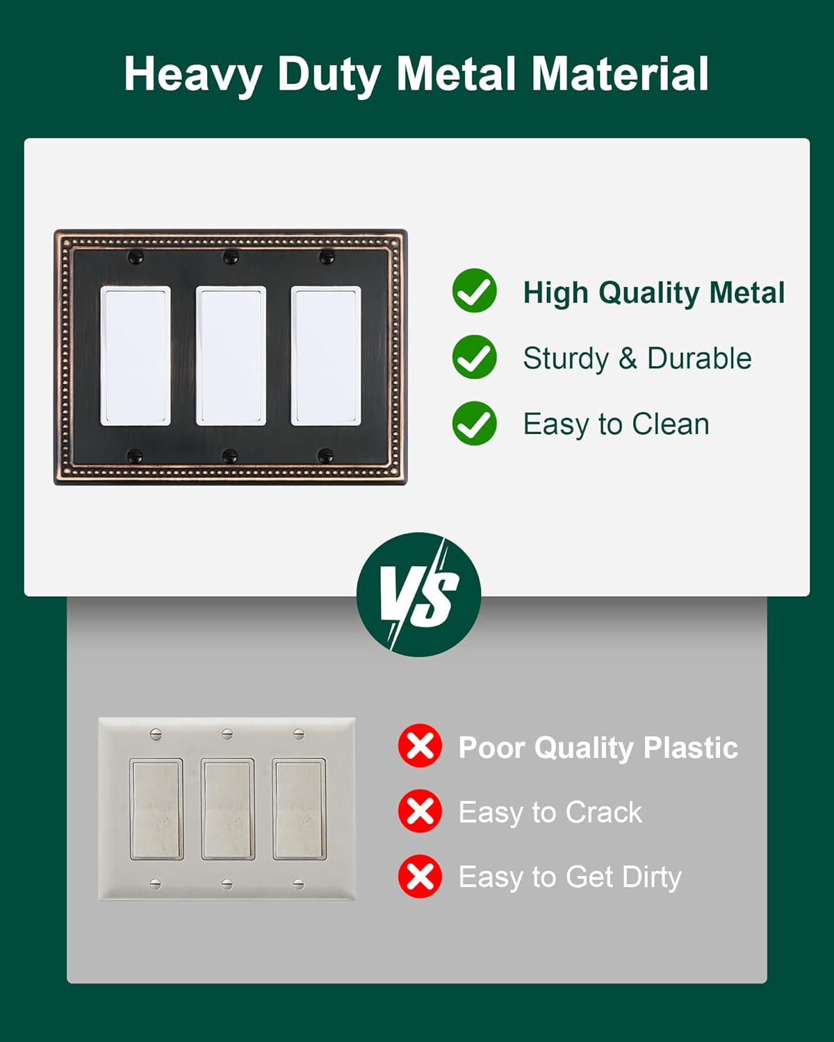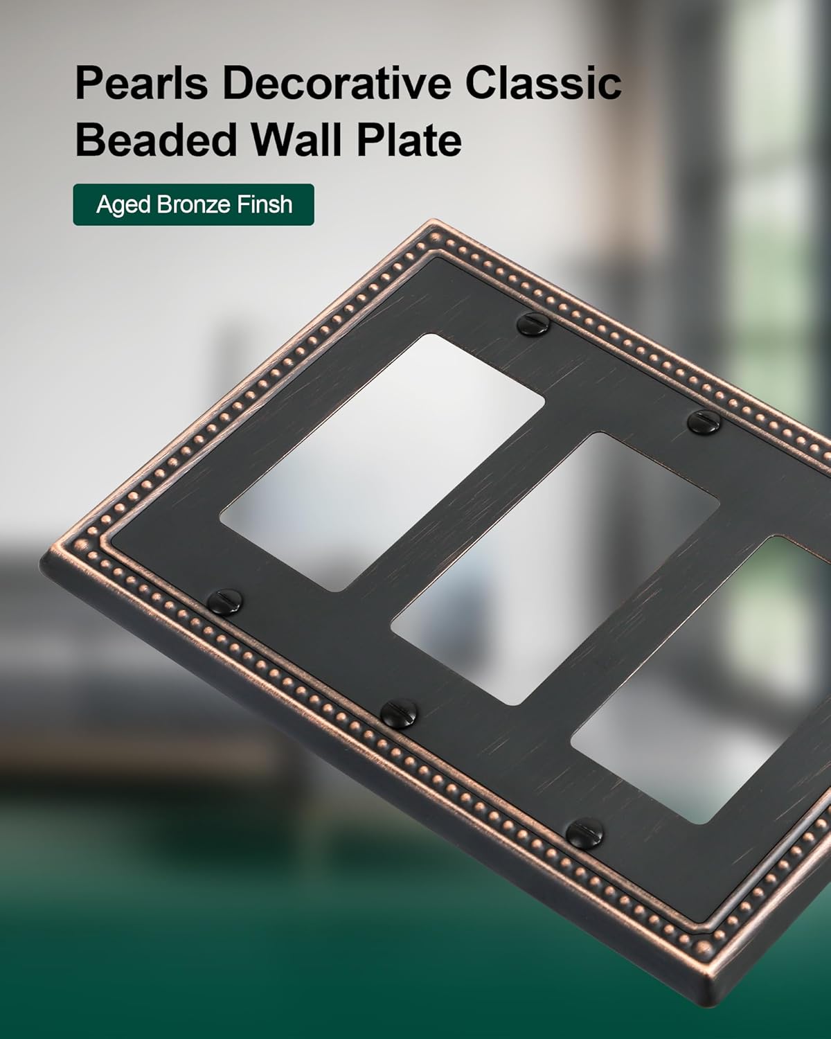 - Timelessly Elegant - The tripple decorator outlet covers feature an exquisite aged bronze finish with a traditionally styled beaded border. Offering a functional yet elegant enhancement to your home decor. Stylish wallplate effortlessly blends practicality with a refined decorative accent and sophisticated charm.