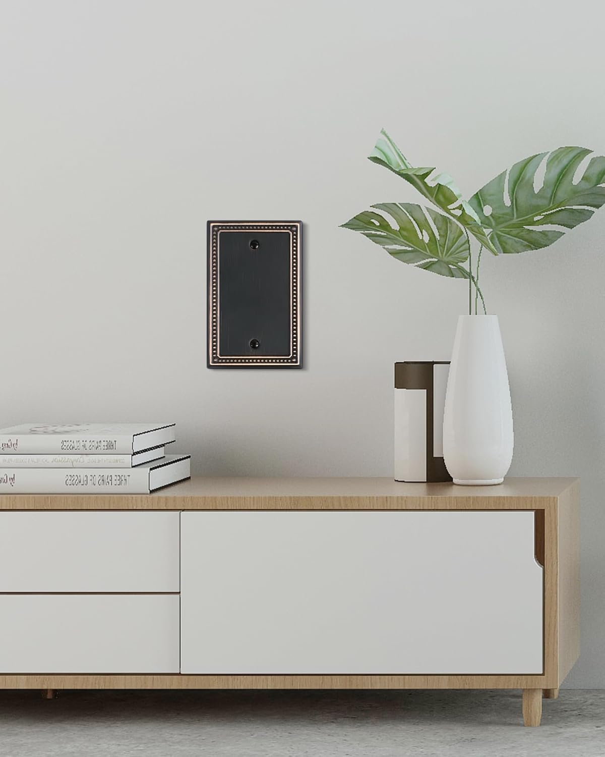- Timelessly Elegant - The blank outlet covers feature an exquisite aged bronze finish with a traditionally styled beaded border. Offering a functional yet elegant enhancement to your home decor. Stylish wallplate effortlessly blends practicality with a refined decorative accent and sophisticated charm.