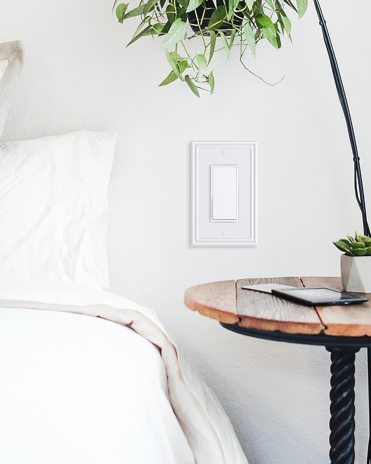 - Wide Application - Versatile and easy to match, These pure white wall plates are compatible with Decorator Outlet Receptacle, Roker Switch, Dimmer Switch, GFCI Outlets. Complements any interior style, whether your decor is modern, traditional, or contemporary, this decorative switch plate cover seamlessly blends in and glams up your wall.