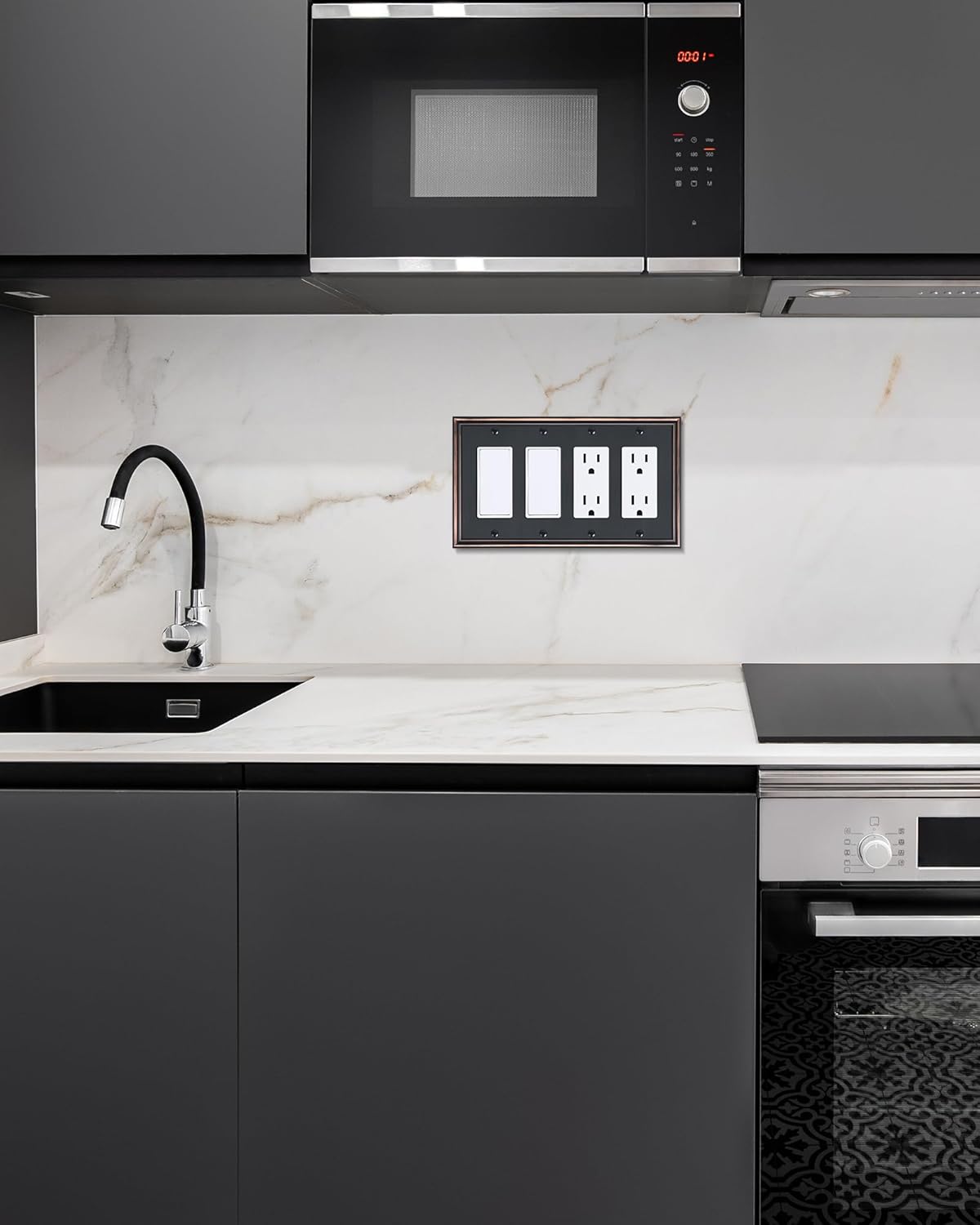 - Stylish yet Simple - Beautifully designed with simple, clean lines and exquisite aged bronze finish, our 4 gang switch plate adds a touch of elegance and sophistication to your decor. The brushed texture further enhances its stylish appeal, effortlessly complements any room, adding an instant touch of elegance and charm.