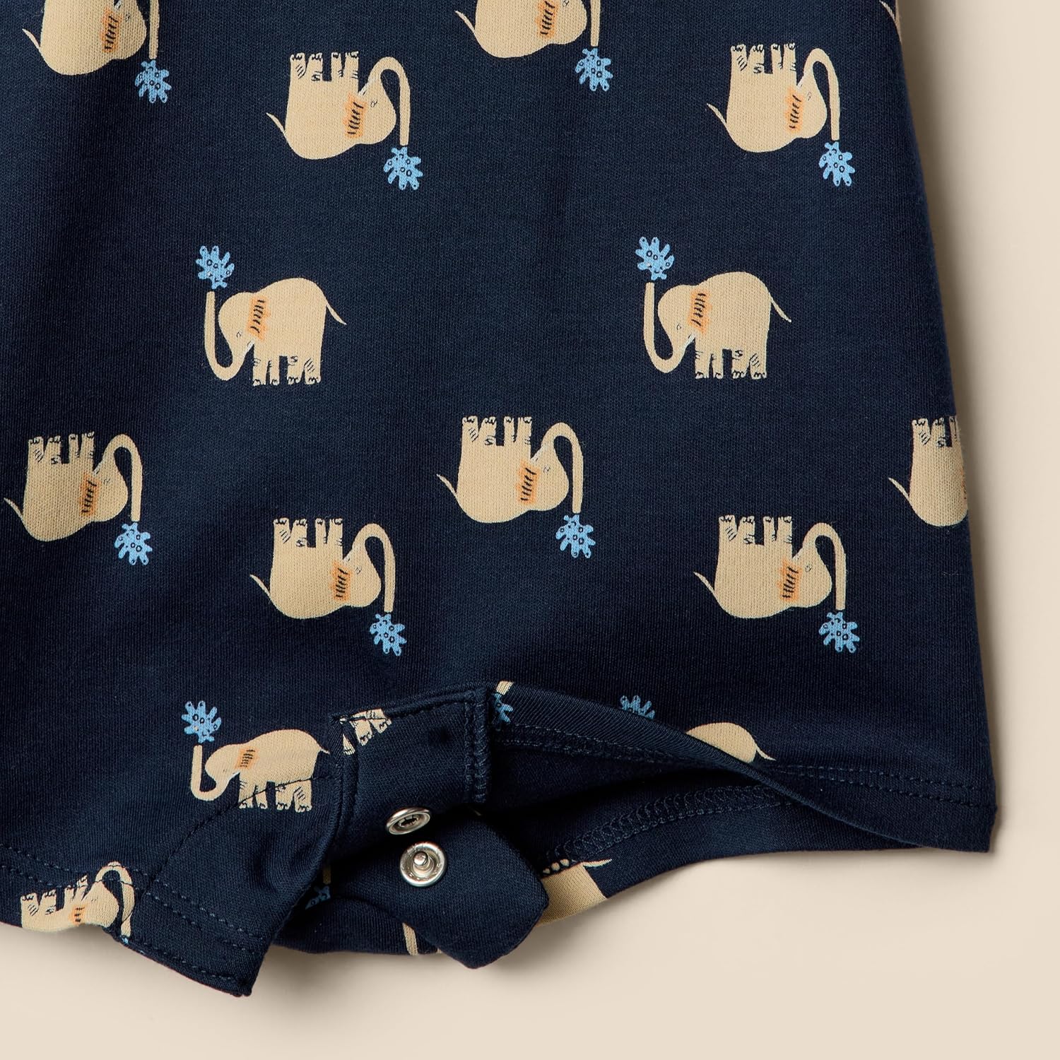 - DETAILS: Features a polo collar with a snap front placket and gusseted snap closure at leg opening