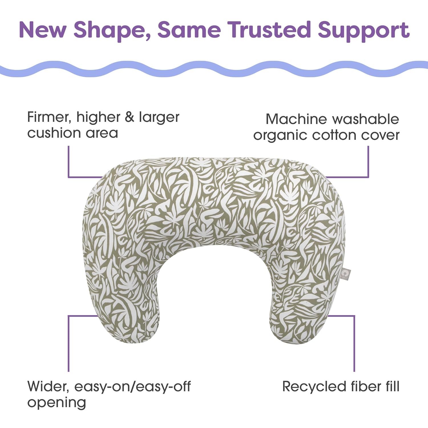 - Wakey Wakey: This product is for baby’s adult-supervised awake time for feeding, not for sleep; soft n’ snuggly organic cotton cover stays cool unlike faux velvet or velour; the nursing pillow is designed and assembled in the United States, filled with recycled polyester fiber so it's hypoallergenic, kinder to our planet and softer and more durable than brittle foam blocks found in other nursing pillows