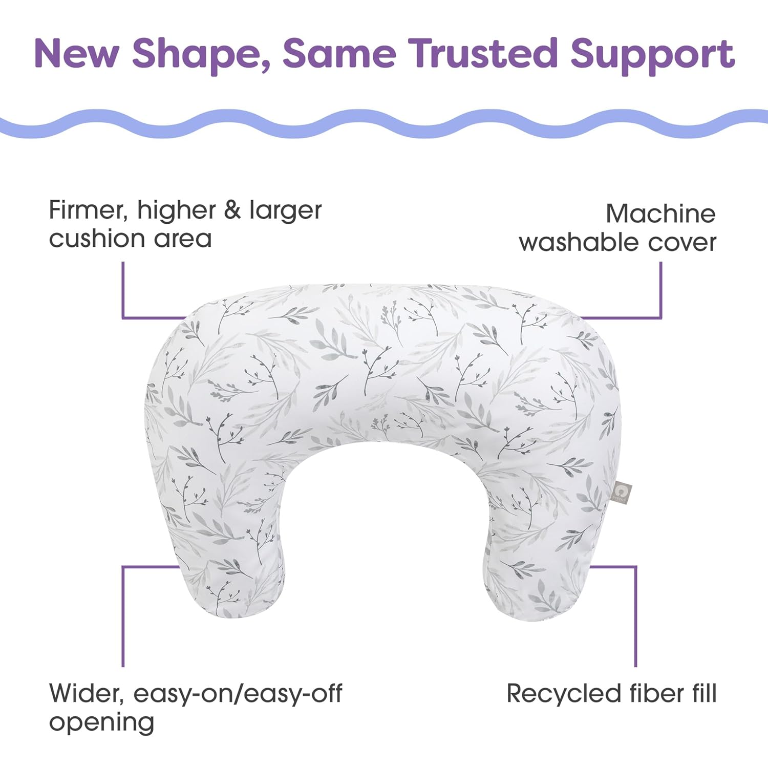 Boppy Nursing Pillow - Ergonomic Bottle & Breastfeeding Pillow with High, Firm, Large Area, Water-Repellent Cushion with Washable Cover; Baby Safety Alliance Verified - Gray Gentle Leaves