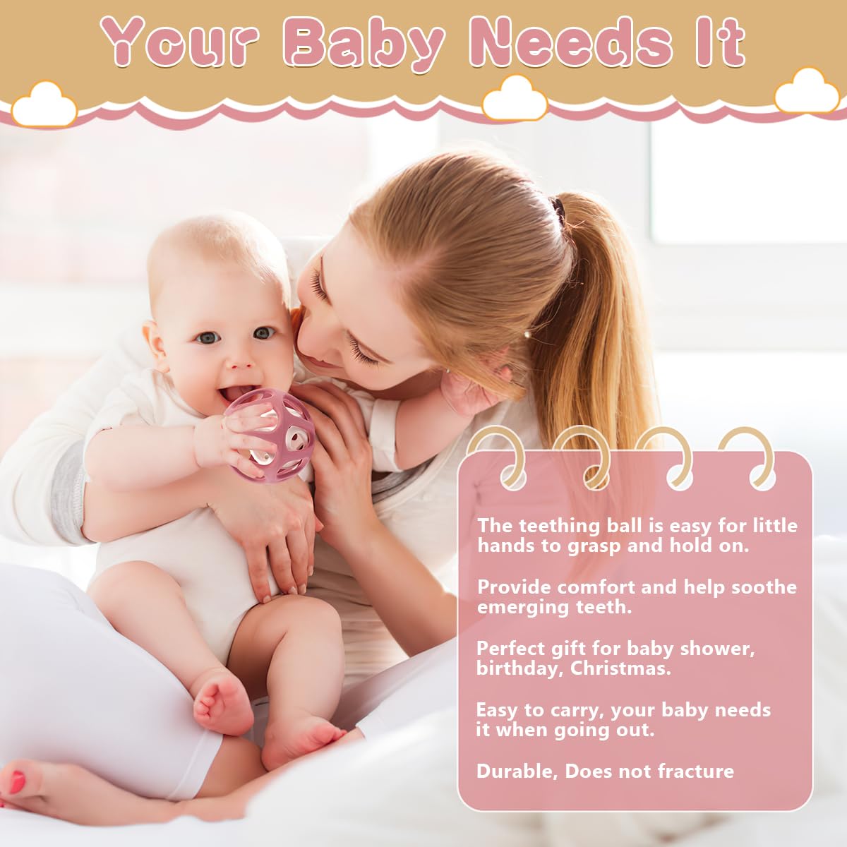 - 【Perfect Gift Idea】The baby teething toy with a gift box, the baby chew ball toy would be an perfect gift choice for newborn babies during the baby shower, Birthday, teething time, Thanksgiving, Christmas, New Year.