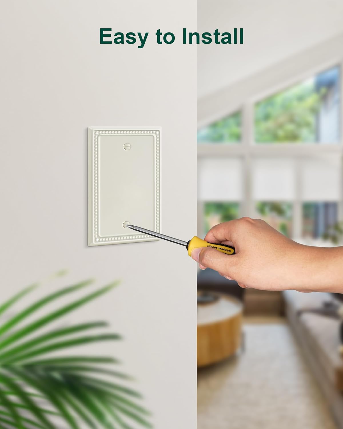 - Elegant Light Almond Finish - The blank outlet cover features a soothing light almond finish, not as dark or yellow as ivory, offering a warmer tone than stark white. This elegant finish adds a fresh appeal to your room and seamlessly blends with any interior style, enhancing the overall aesthetic of your home decor.