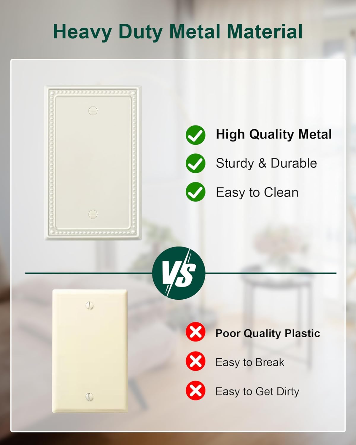 - Durable & Long-lasting - Constructed from high-quality metal, our light almond metal wall plate is built to last. It is resistant to impact, tarnishing, and corrosion, ensuring its durability and longevity. Ensuring it remains a stunning addition to your home for years to come.