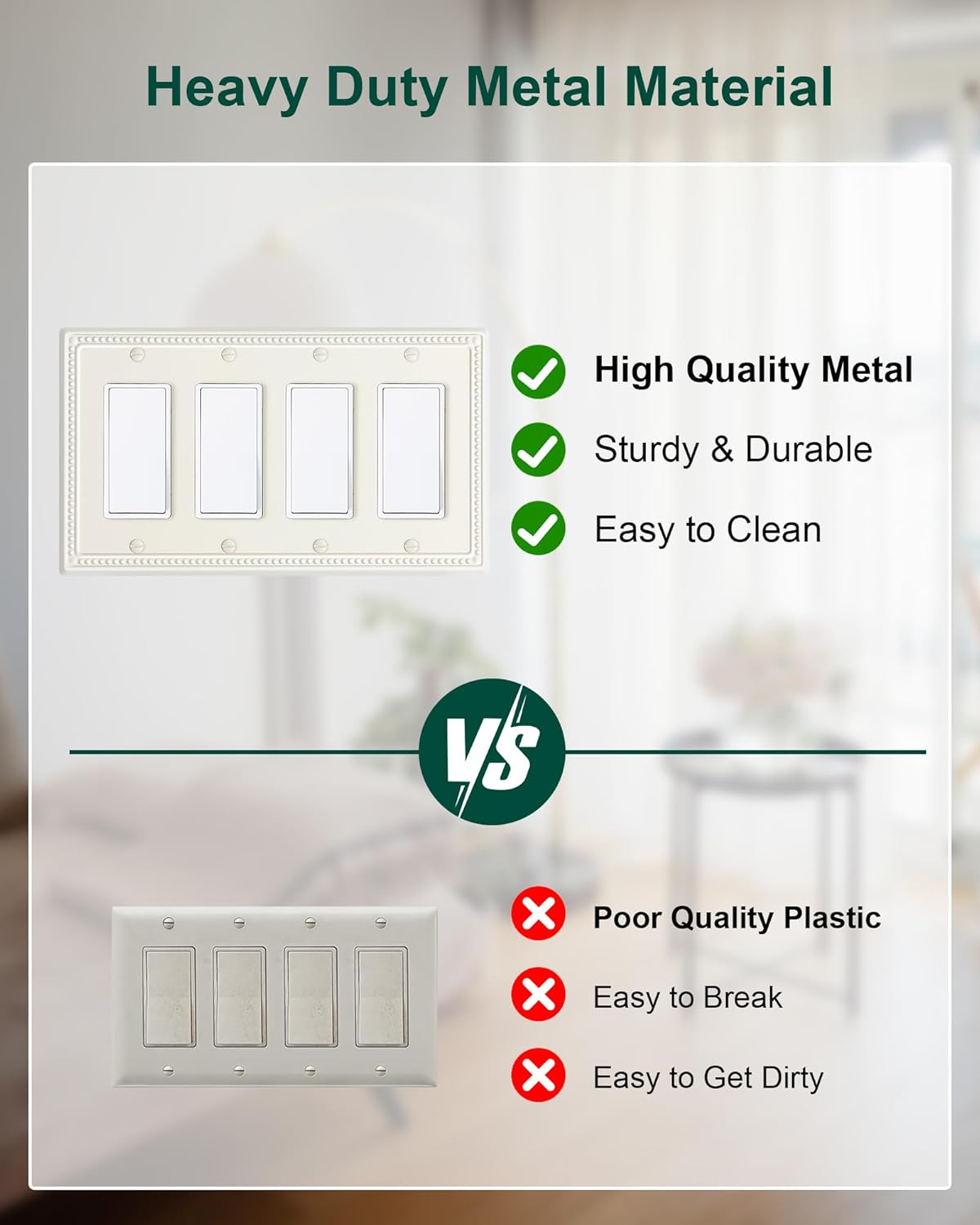 - Durable & Long-lasting - Constructed from high-quality metal, our light almond metal wall plate is built to last. It is resistant to impact, tarnishing, and corrosion, ensuring its durability and longevity. Ensuring it remains a stunning addition to your home for years to come.