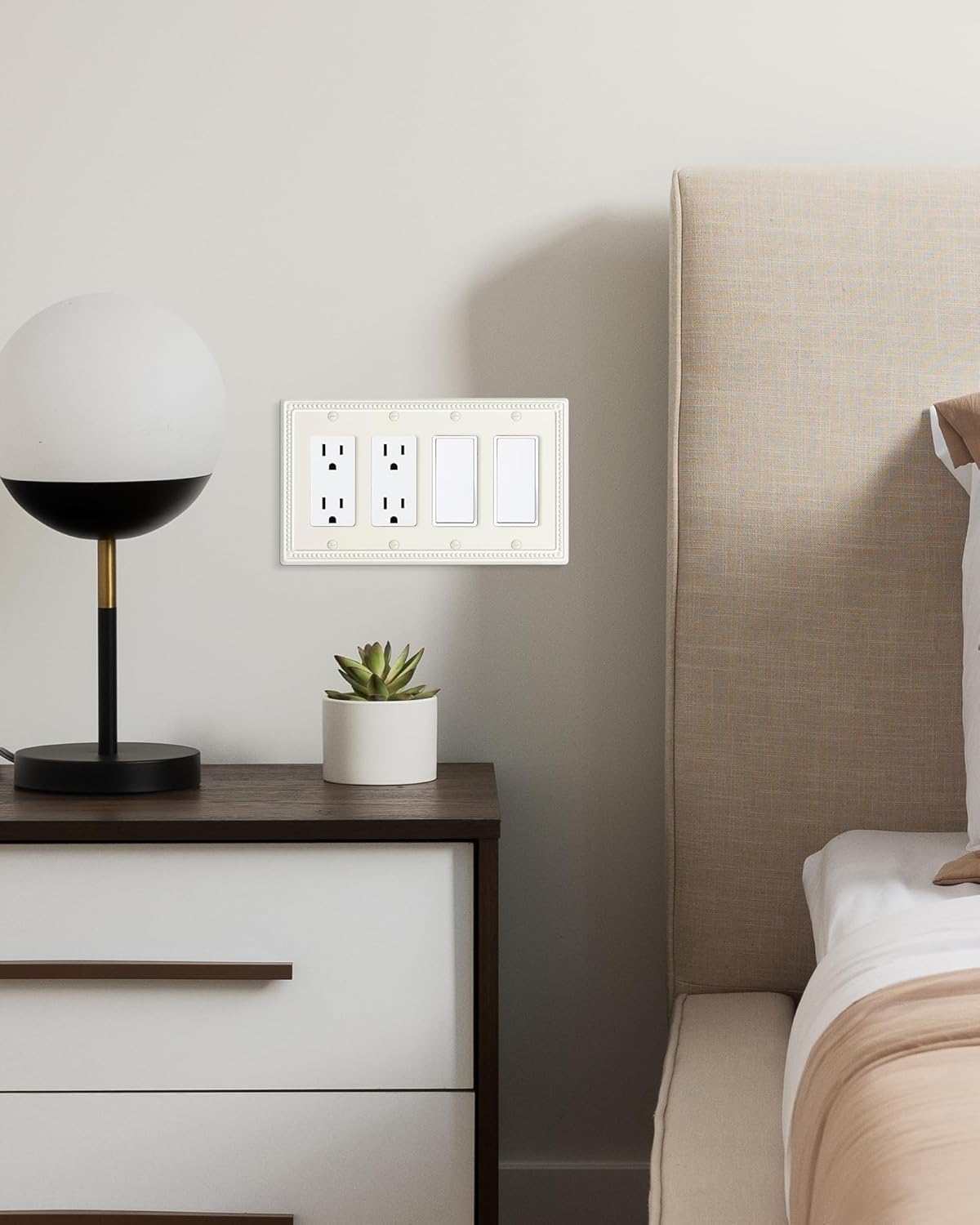 - Elegant Light Almond Finish - The quad decorator outlet covers features a soothing light almond finish, not as dark or yellow as ivory, offering a warmer tone than stark white. This elegant finish adds a fresh appeal to your room and seamlessly blends with any interior style, enhancing the overall aesthetic of your home decor.