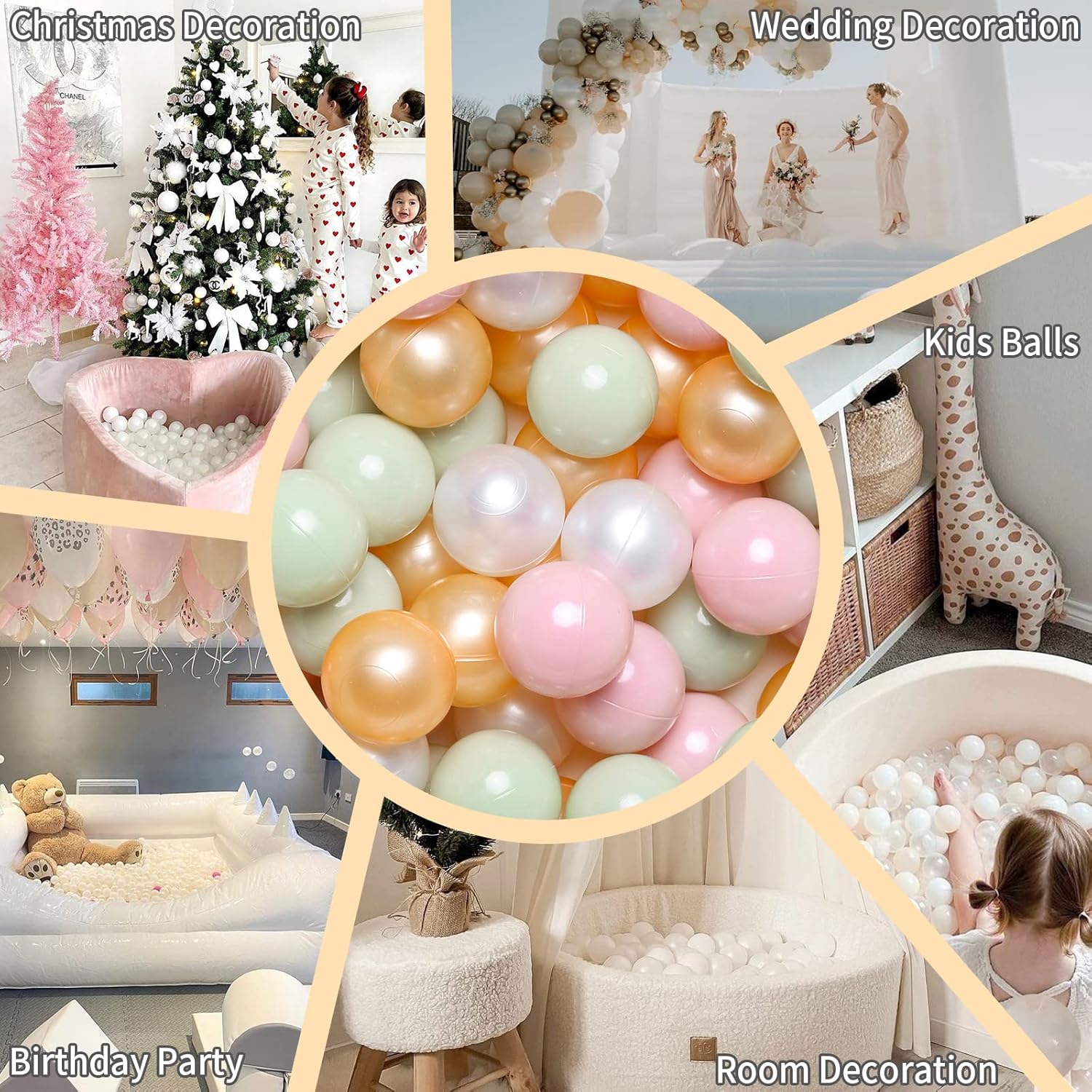 - Multipurpose Entertainment: Elevate playtime in any setting β ball pits,party decoration, diy giant frienship bracelet banner, play tents, playhouses, baby swimming pools, playpens, and bounce houses. Versatile for baby or toddler ball pits, indoor playpen parties, bath time, and even Christmas tree decoration. With smooth edges, and an easy-to-clean design, these plastic balls bring fresh fun every day.