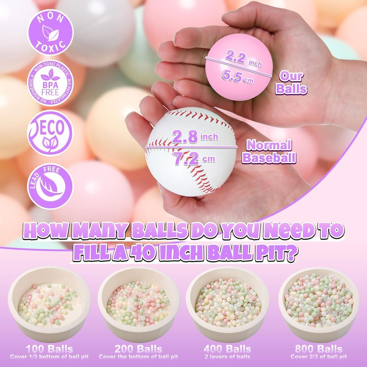GOGOSO Balls for Ball Pit - Plastic Ball for Toddlers 1-3, Baby Kids Ball Pool Decoration 50 100 200 300 500 1000 (6 Colors, 1000 Balls)