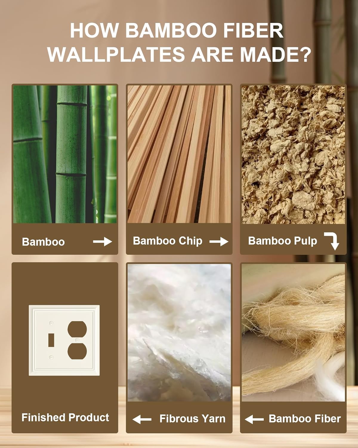 - Natural Bamboo Fiber Material - The Combo Toggle/Duplex switch plate covers are made from sustainable and environmentally friendly bamboo fiber, much thicker and more robust than plastic covers, easier to clean. Resistant to heat, moisture, and corrosion, ensuring it remain a stunning addition to your home for years to come.