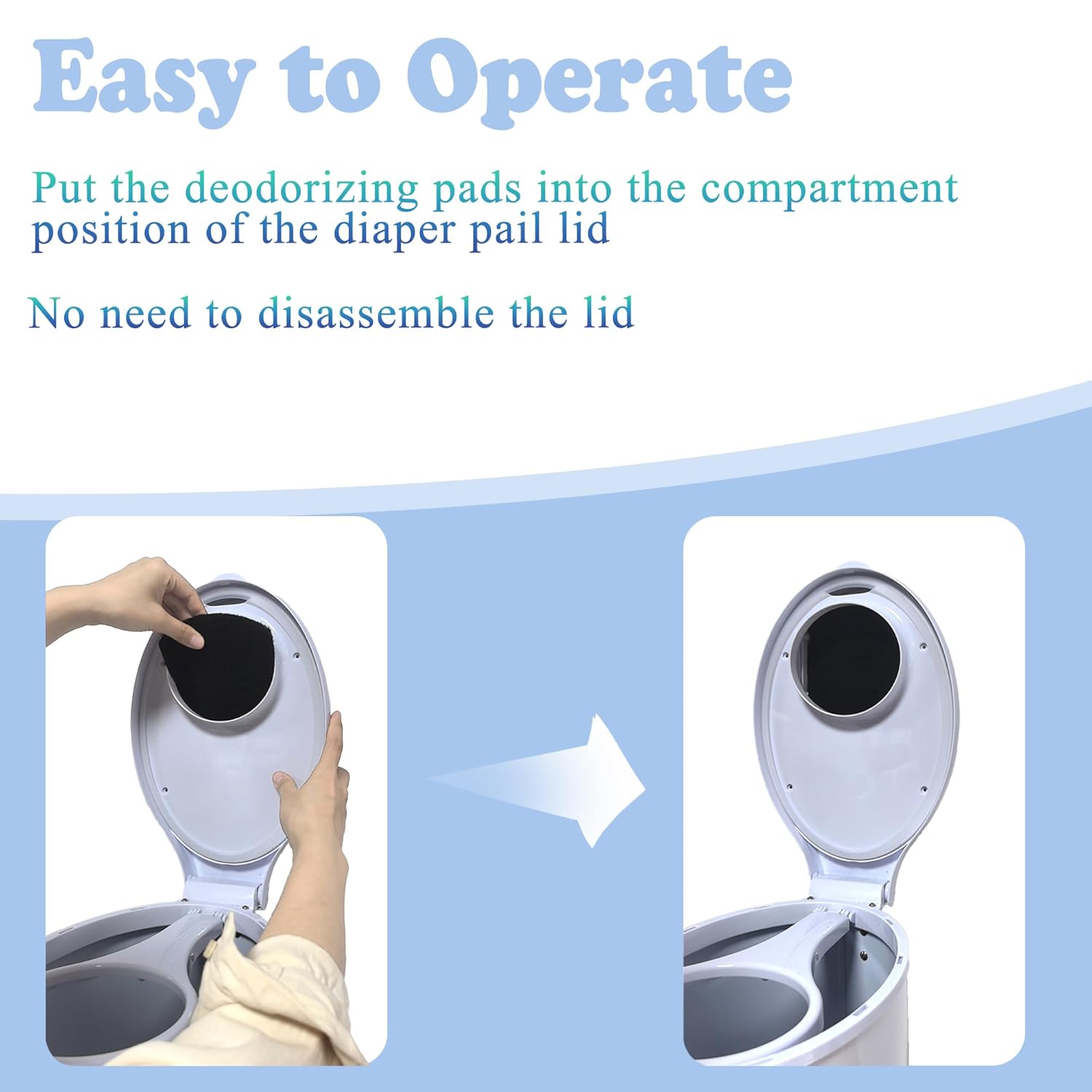 - EASY TO OPERATE: Just put the deodorizing pads into the compartment position of the diaper pail lid, no need to disassemble the lid, saving more effort