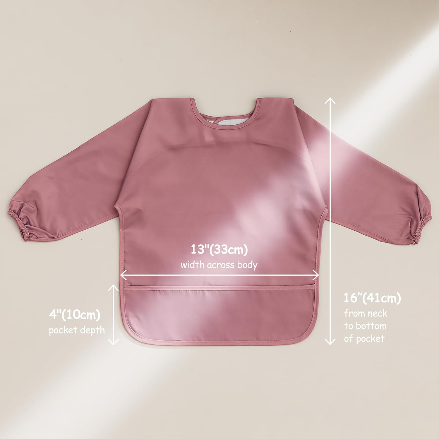 - Mess-Free Solution - Our sleeved bibs are crafted from lightweight, waterproof, easy-wipe fabric that resists stains and odors. Generously sized to contain messes, these bibs feature a spill pocket to catch stray food, keeping your baby and the surrounding area clean.