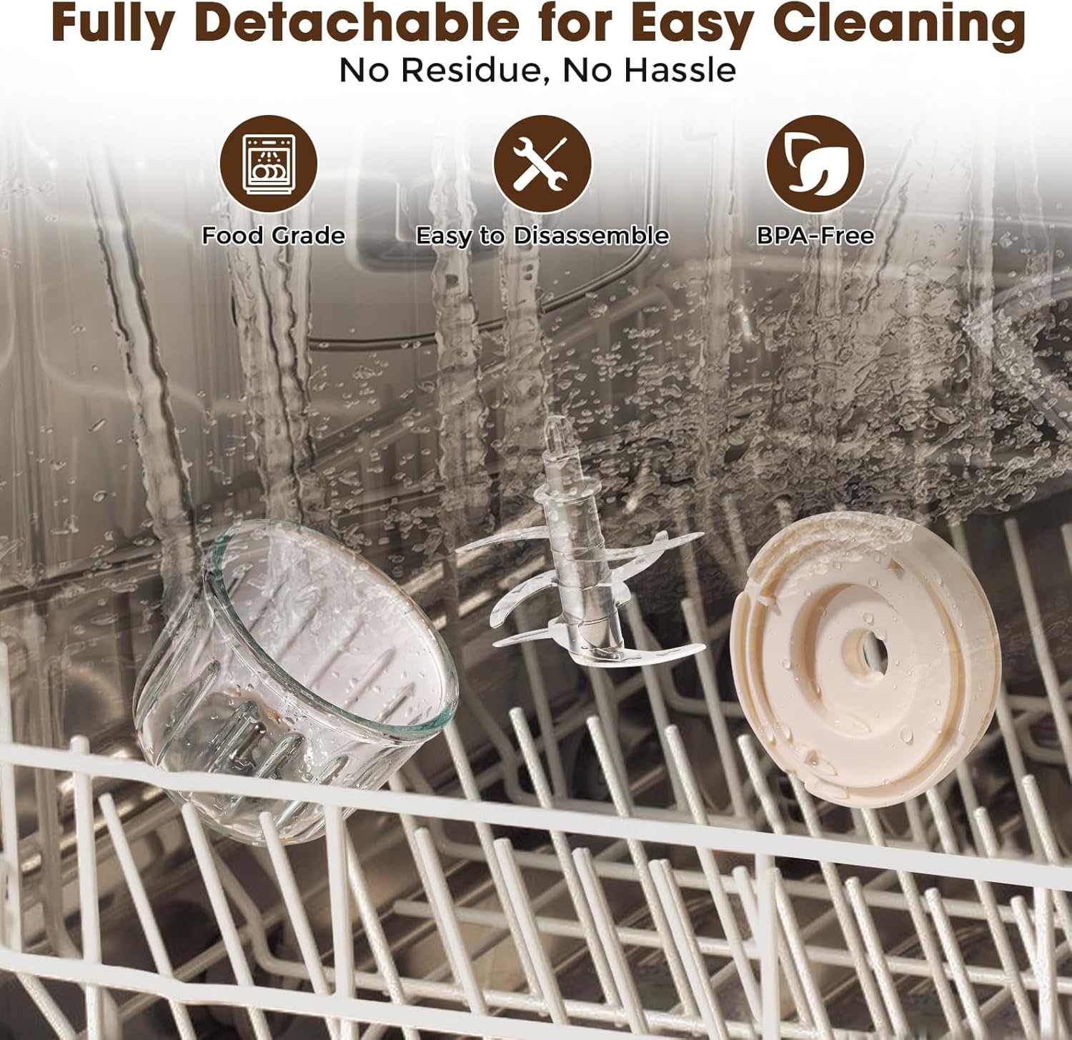 Baby Food Processor – Puree Blender with Glass Bowl, Stainless Steel Blades, BPA-Free, One-Touch Control, Easy to Clean, Quiet Operation, Ideal for New Parents, 10oz
