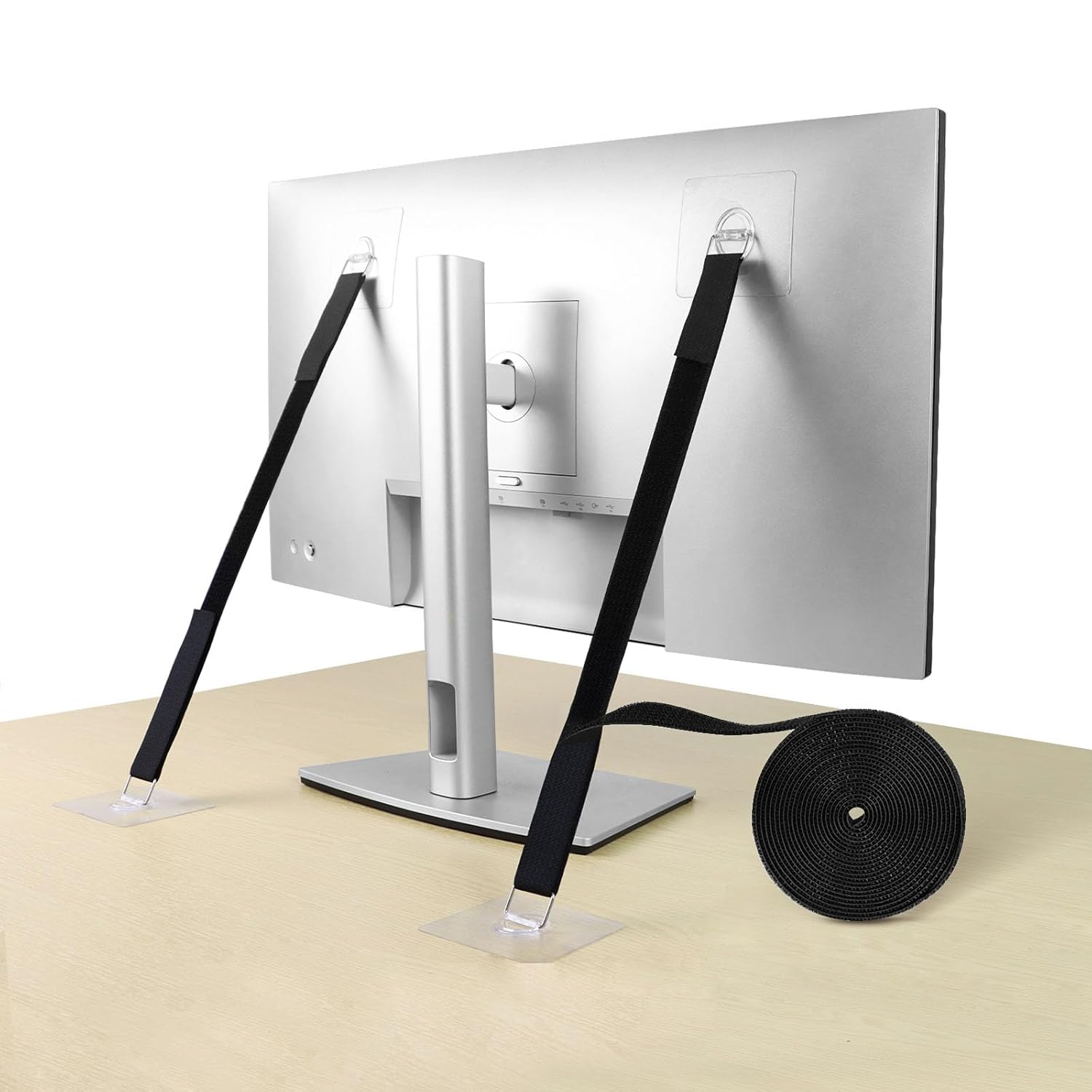 10 Pack Cut to Length TV Safety Straps for Flat Screen, No-Drill Adjustable Anti-Tip Earthquake Straps for TV and Furniture,Including 1in*32ft Hook and Loop Straps with 20 Adhesive Anchors