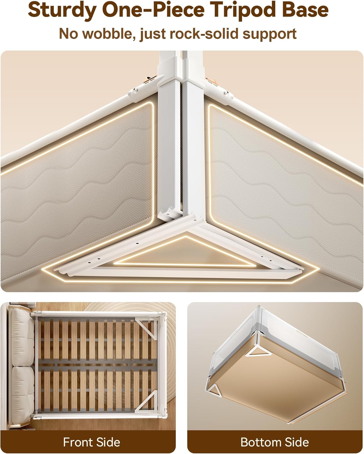- Nail-Free Installation for All Beds- Oneya Baby’s toddler bed rails for queen bed feature an innovative nail-free design with a golden-triangle integrated support structure, preventing bed frame damage and ensuring easy setup. Crafted from thickened, hardened carbon steel tubes, the bed rails for toddlers outshine ordinary iron rails in strength and safety. This robust build keeps the bed stable, withstands strong pushes, and offers unwavering protection. So you can sleep soundly, too.