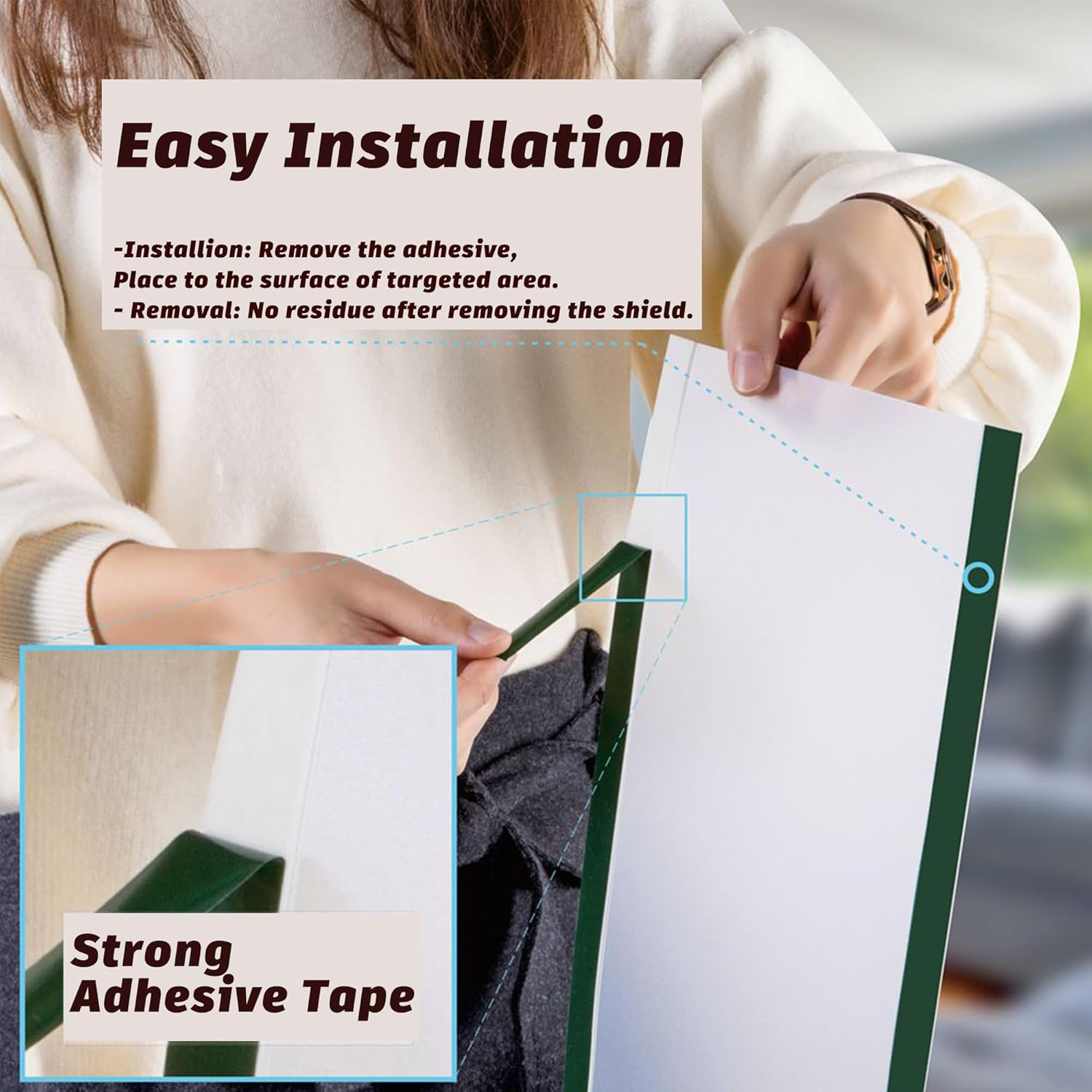 - 【Easy Installation - Step 1】Target the cover area on the door and frame > Clean and dry > Close the door for easy installation > Adhesive strips are on the left and right edges of the shield > Remove the adhesive liners a bit of either the edge on the shield.