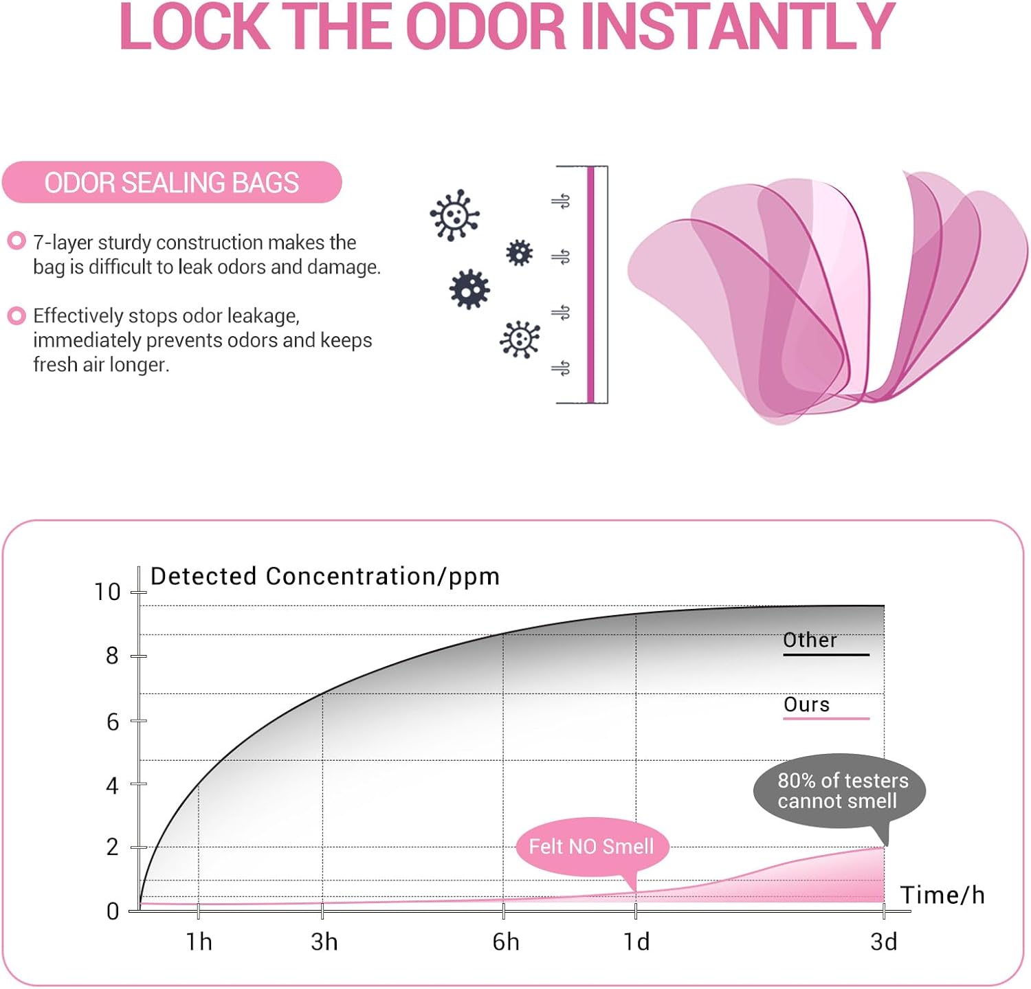 - Odor Control with 7-Layer Barrier: Crafted with advanced 7-layer odor barrier technology, these diaper disposal bags help seal in unpleasant smells for up to 3–5 days. Unscented and highly effective, they keep your nursery and surroundings fresh and clean