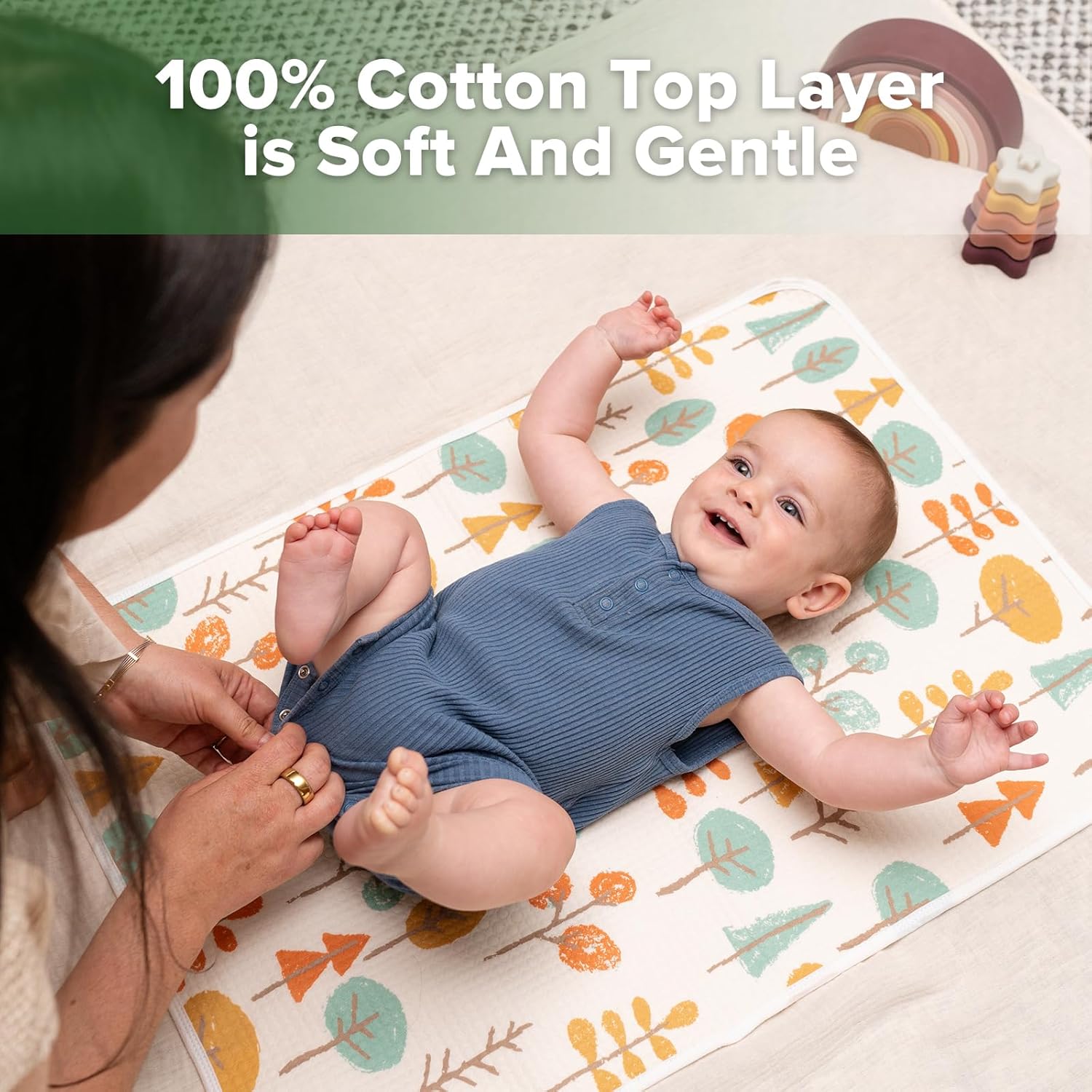- SOFT AND GENTLE: Each Haakaa baby changing pad liner features a soft, breathable, 100% cotton top layer to remain comfortable against your babyโs sensitive skin.