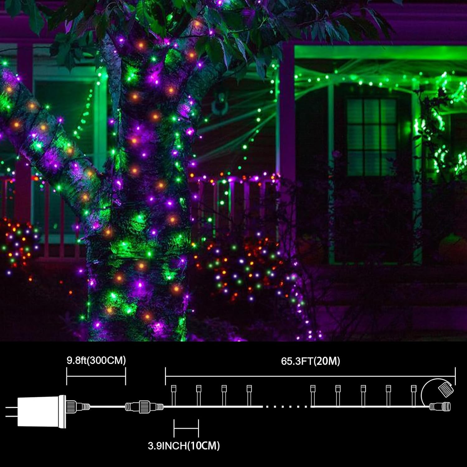 - Halloween Decorations String Lights: 66FT Christmas string lights with 200 purple ,Green ,Orange LED bulbs. Each Christmas lights has end-to-end connection, you can connect up to 8 sets together to illuminate a wider range.