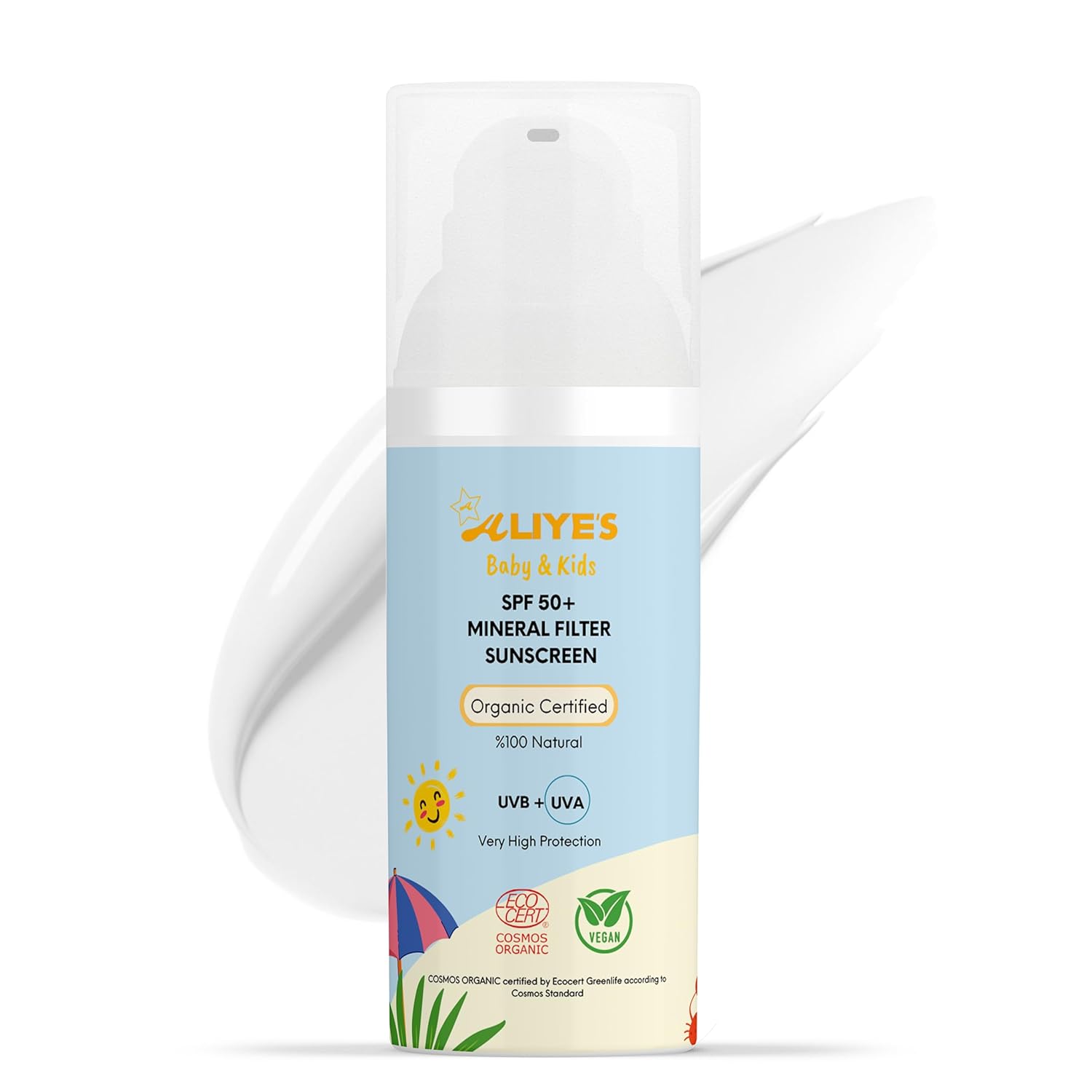 ALIYES SPF 50+ Organic Baby&Kids Mineral Sunscreen – Safe for Babies - Water Resistant Sun Cream – Broad Spectrum UVA/UVB Sun Protection – Vegan Baby Sunscreen Lotion, 1.69 FL