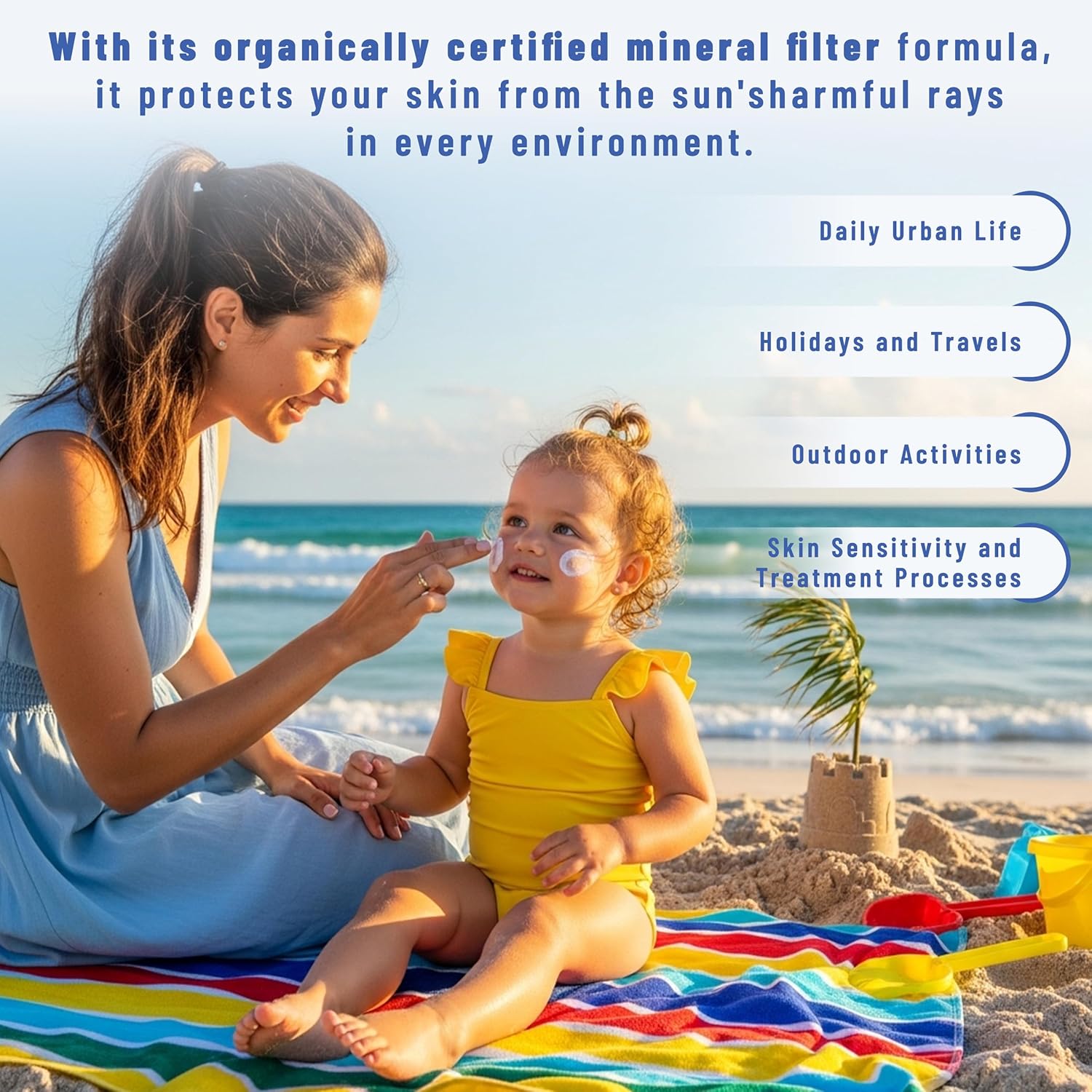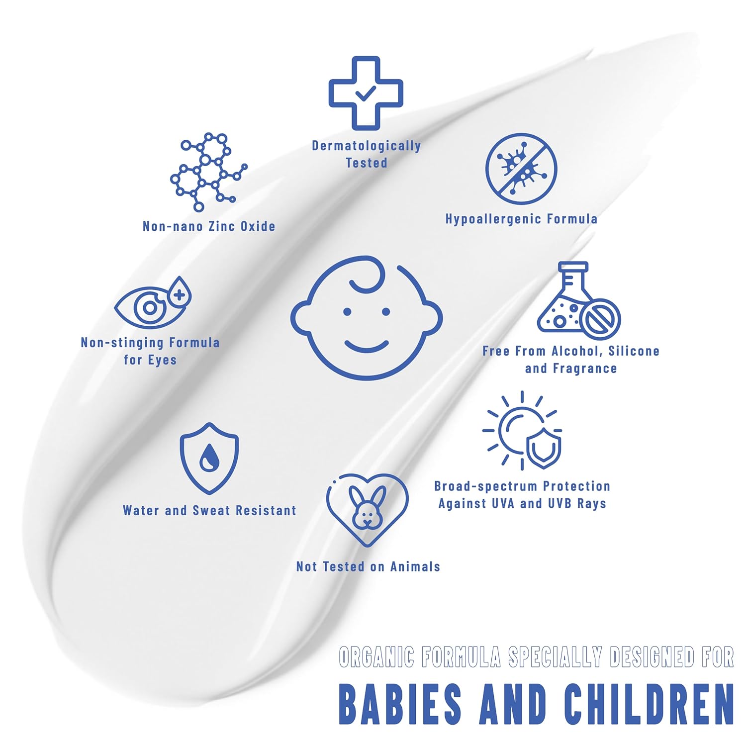 - SPF 50+ Mineral Broad-Spectrum Protection- With non-nano zinc oxide as a natural mineral filter, this baby sunscreen creates a safe physical barrier against harmful UVA and UVB rays. Free from harsh chemical filters, it’s a gentle and healthy choice for your little one’s sensitive skin.